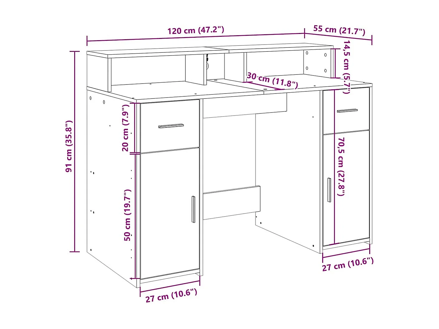Bureau avec lumières LED blanc 120x55x91 cm bois d'ingénierie