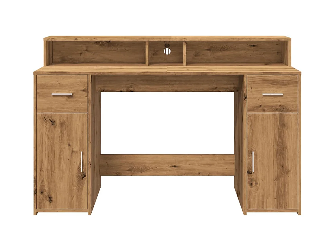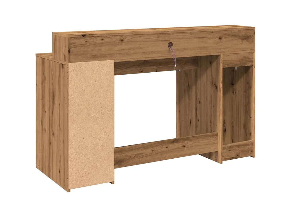 Bureau avec lumières LED chêne artisanal bois d'ingénierie