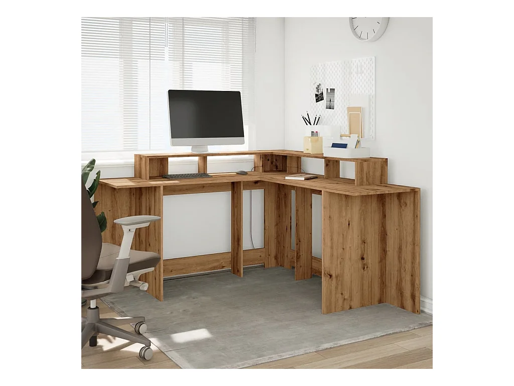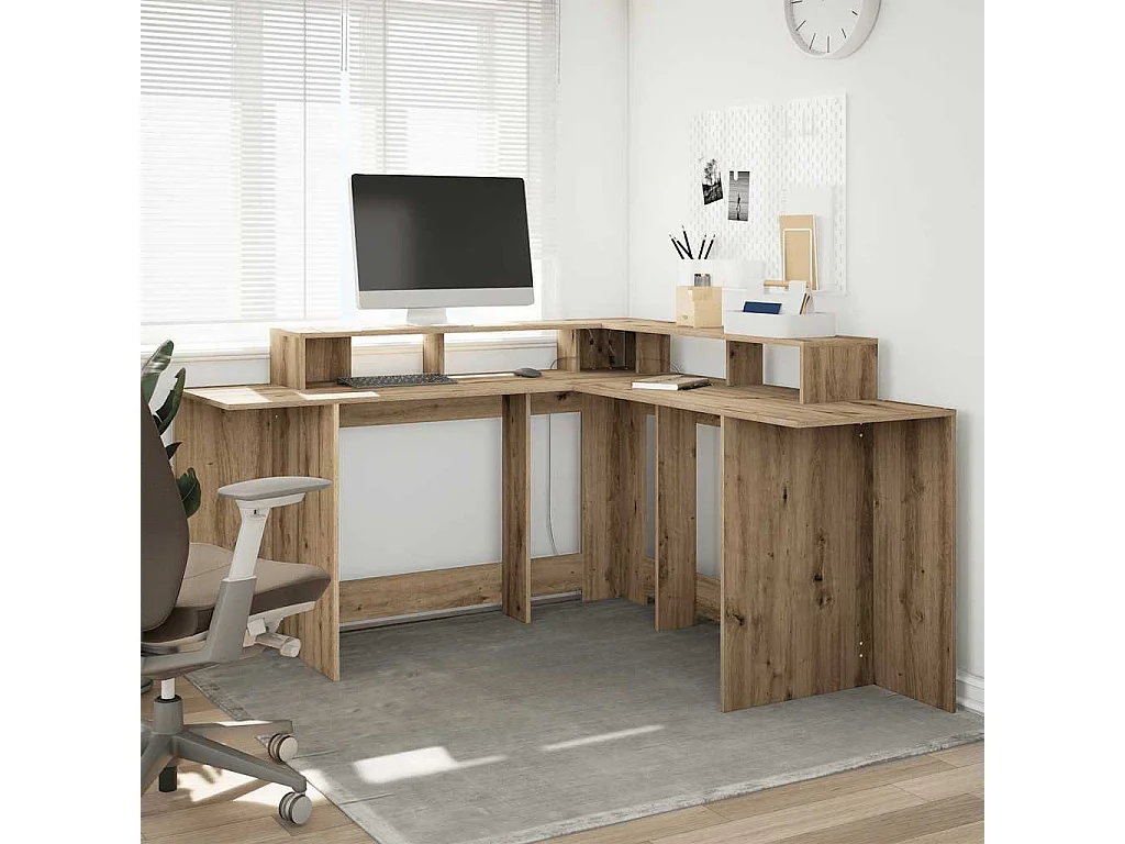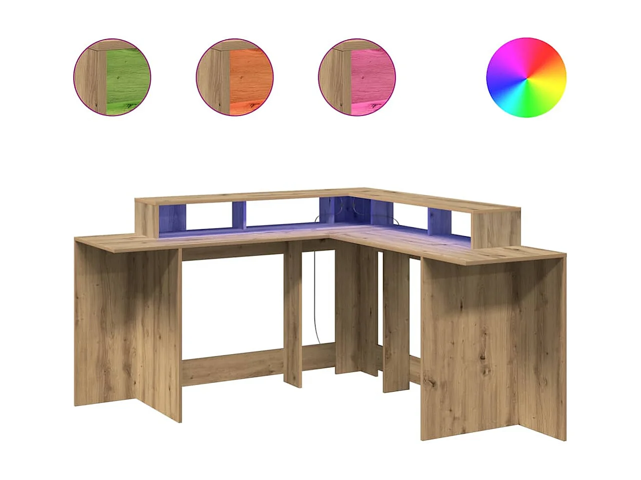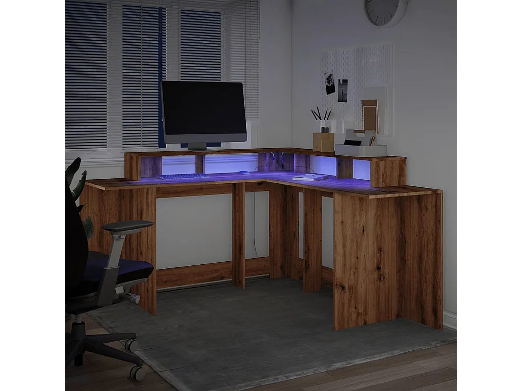 Bureau et lumières LED chêne fumé 130x130x91cm bois ingénierie
