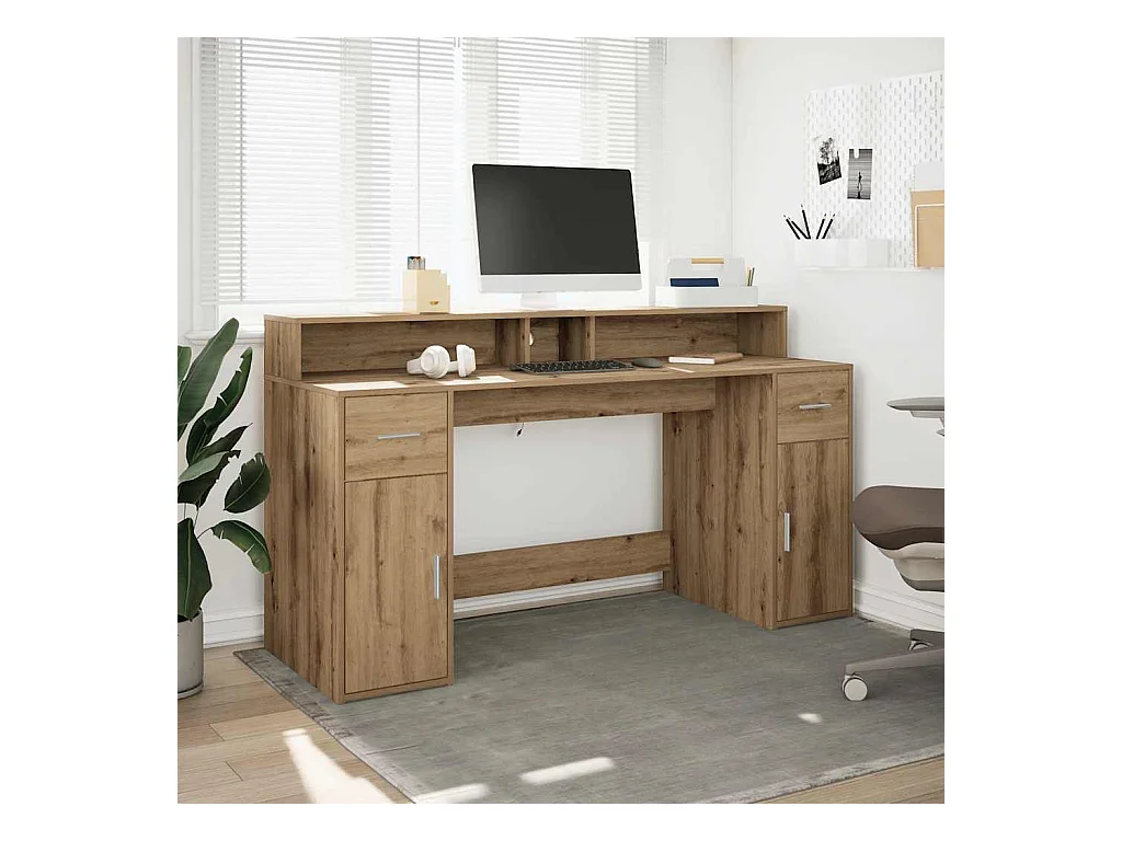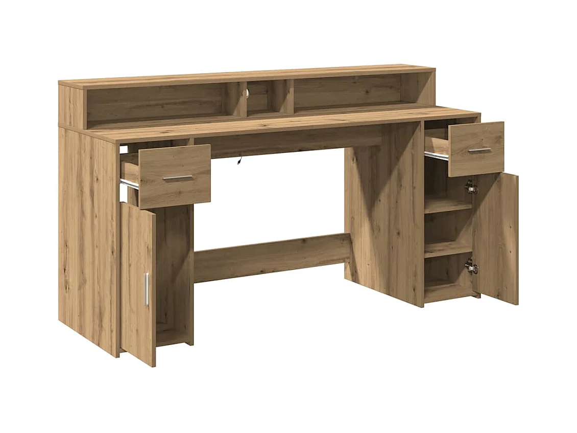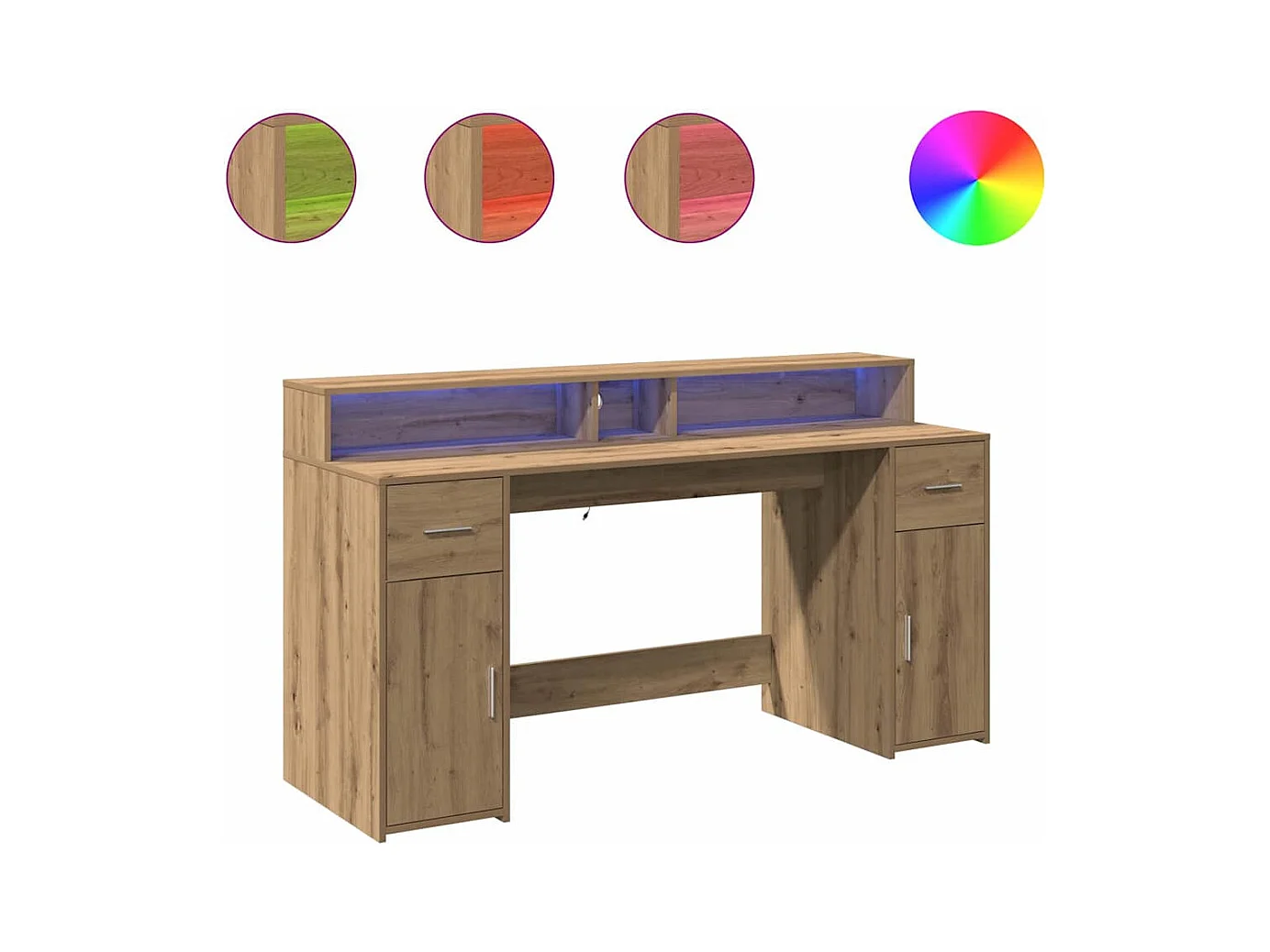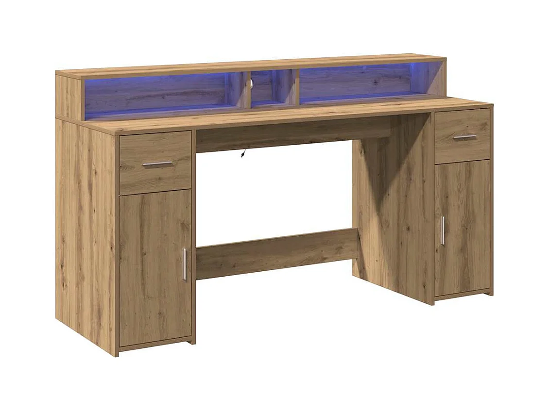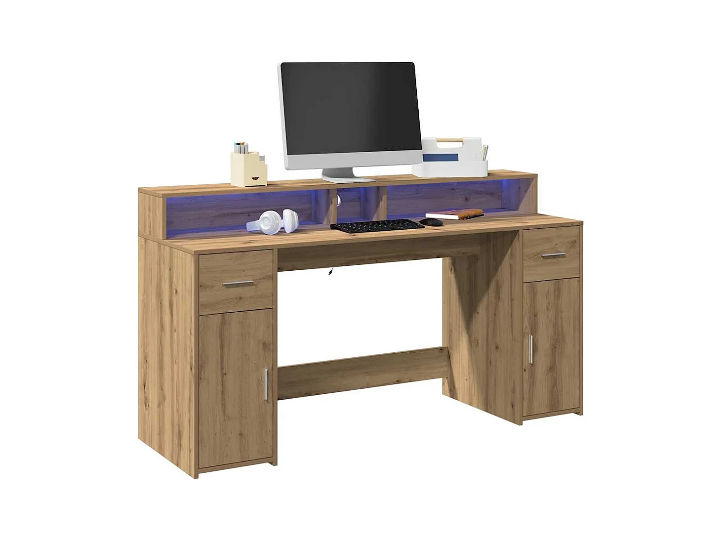 Bureau avec lumières LED chêne artisanal bois d'ingénierie