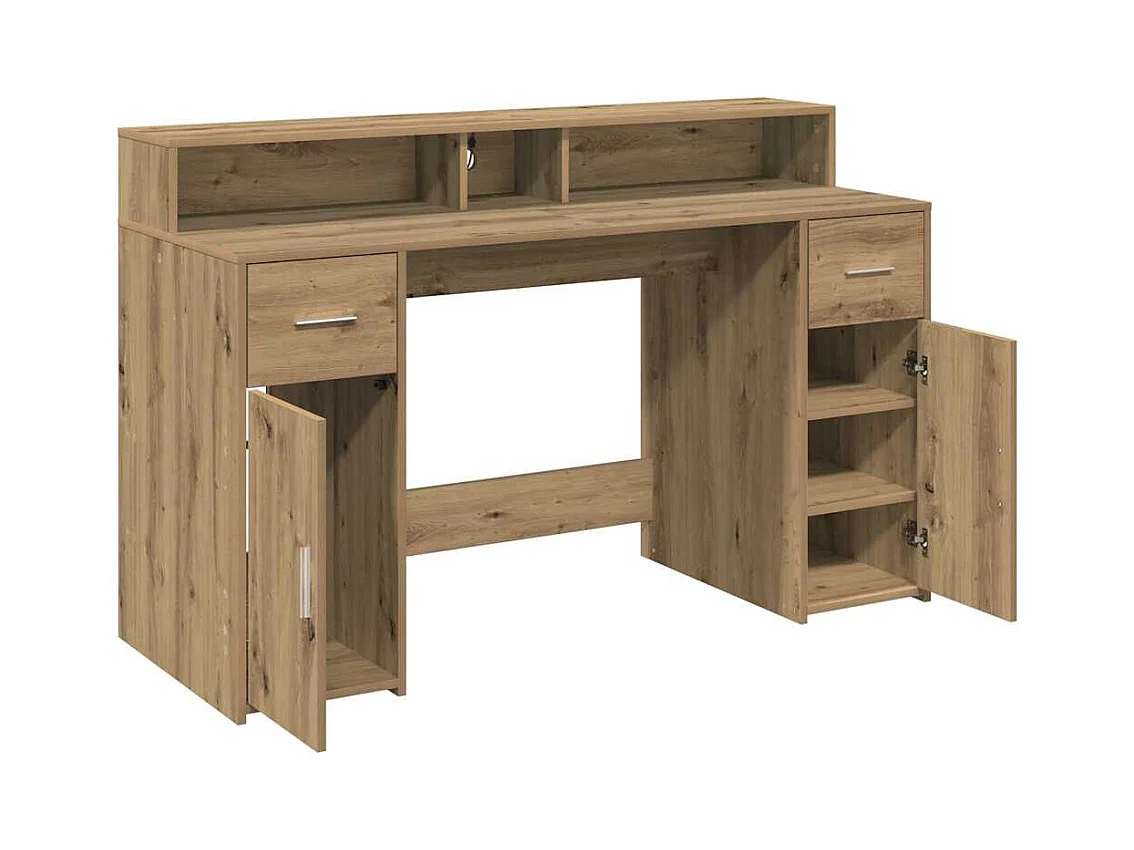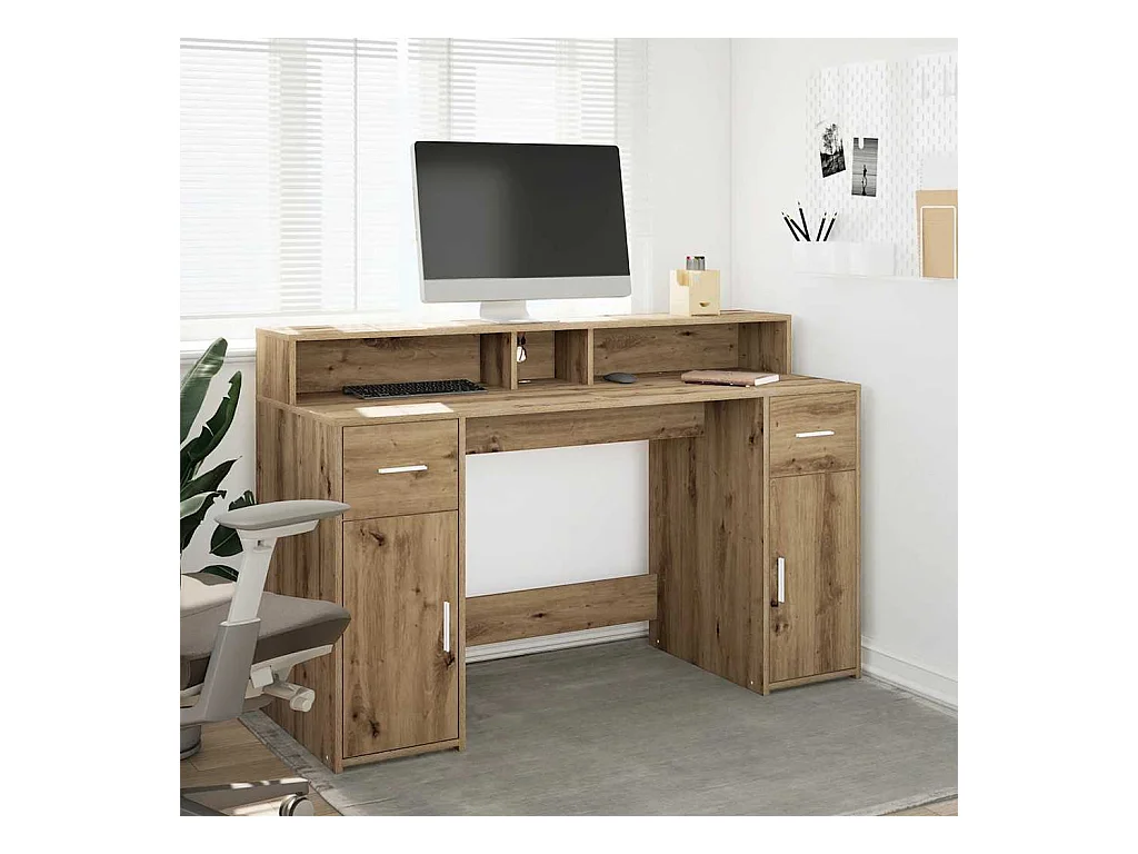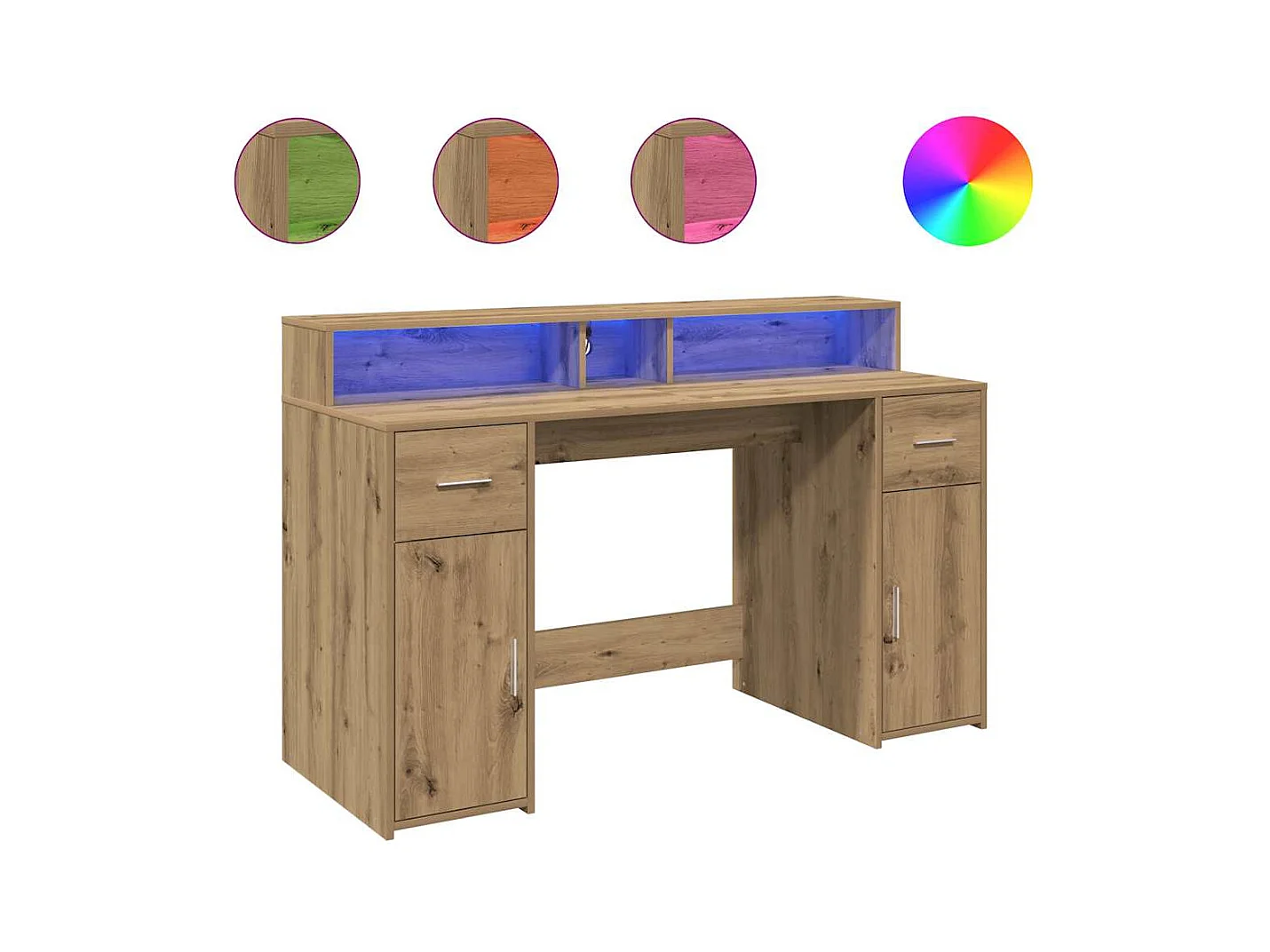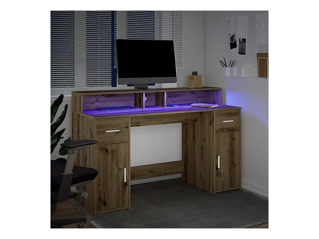 Bureau avec lumières LED chêne artisanal bois d'ingénierie