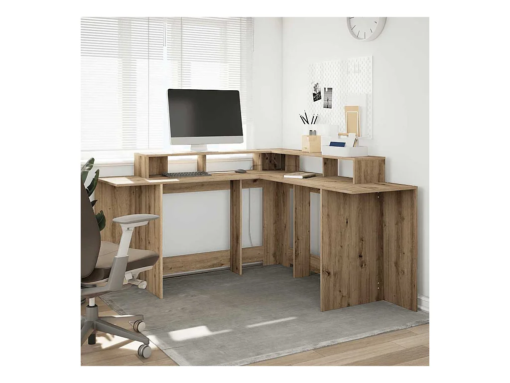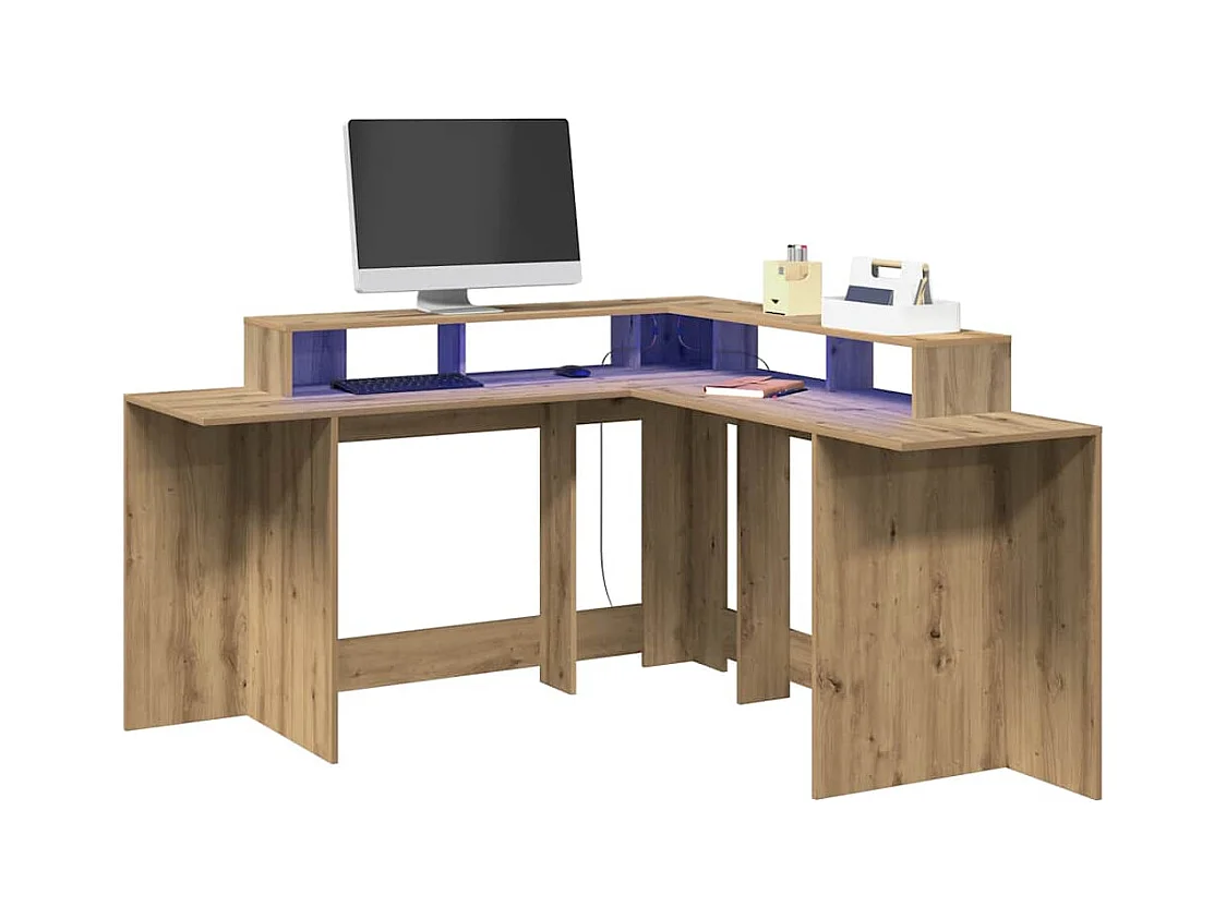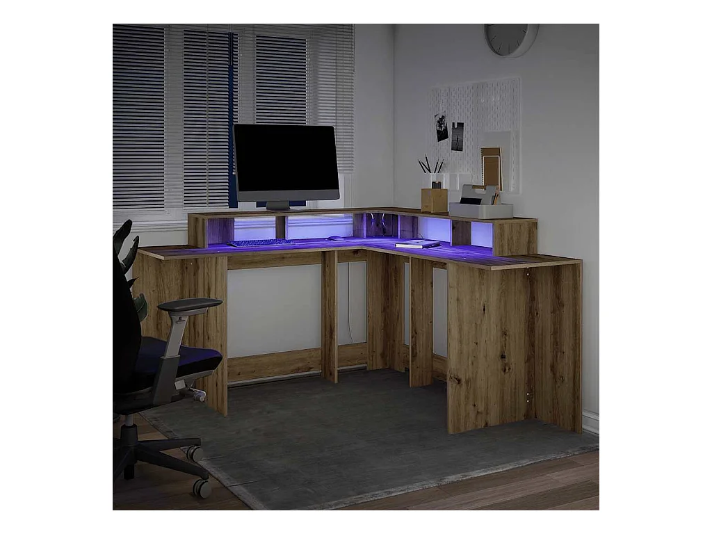 Bureau avec lumières LED chêne artisanal bois d'ingénierie