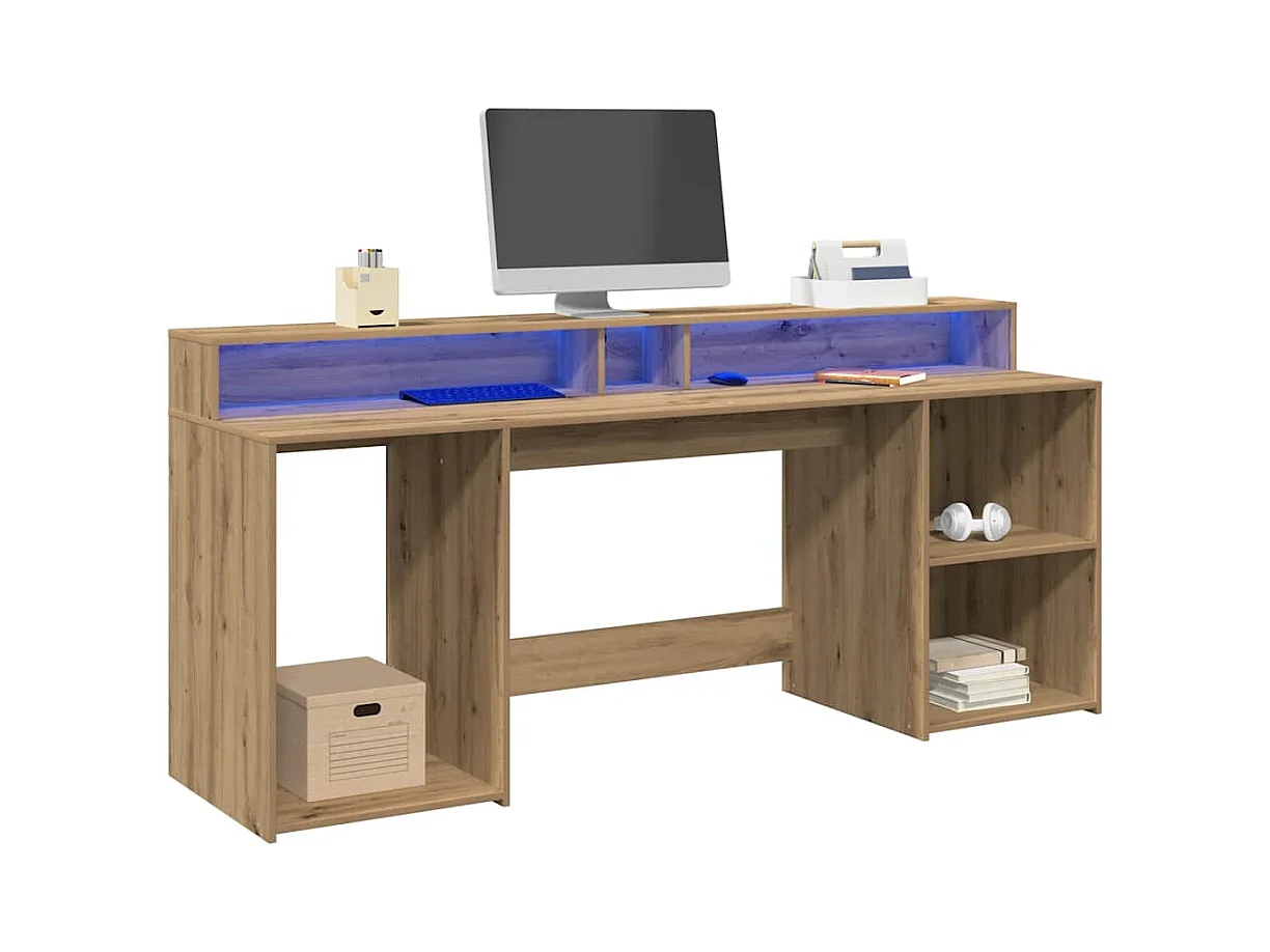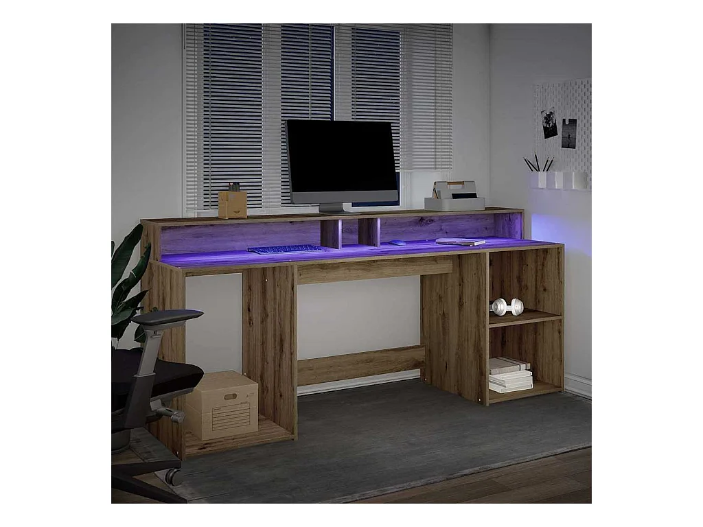 Bureau avec lumières LED chêne artisanal bois d'ingénierie