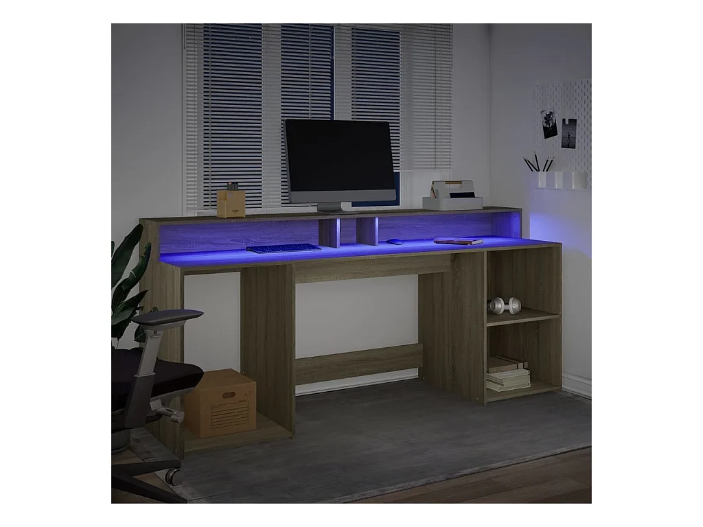 Bureau et lumières LED chêne fumé 200x55x91cm bois d'ingénierie