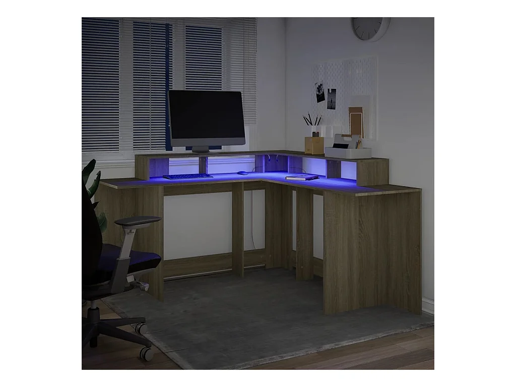 Bureau avec lumières LED chêne sonoma bois d'ingénierie