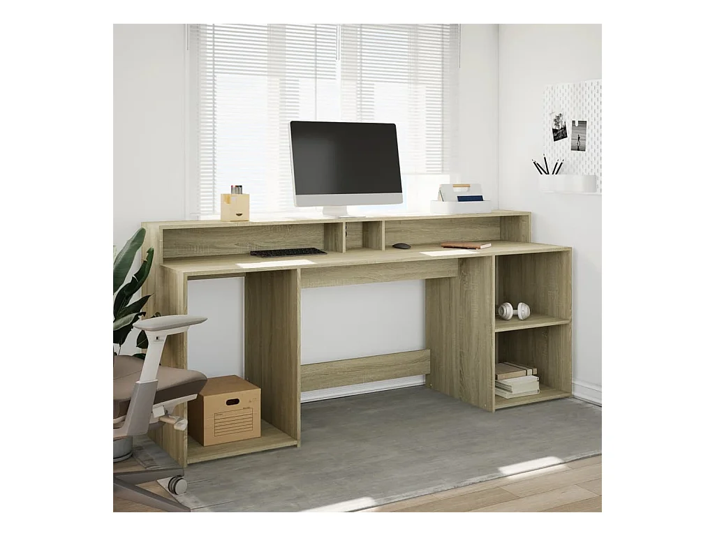 Bureau avec lumières LED chêne sonoma bois d'ingénierie
