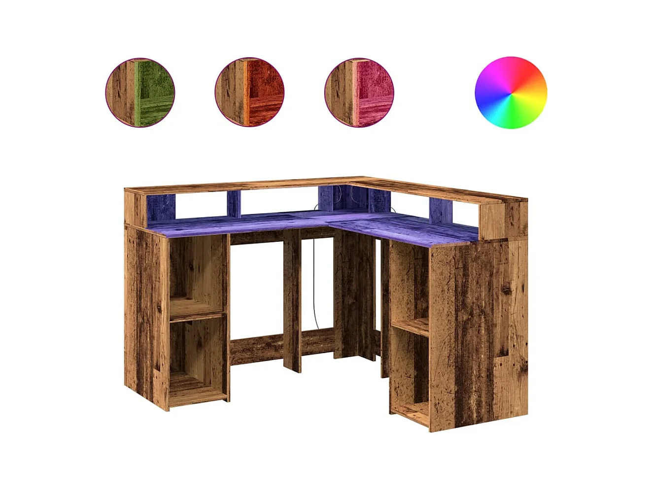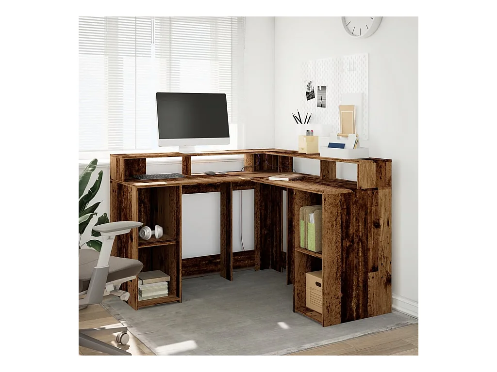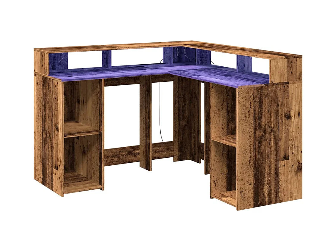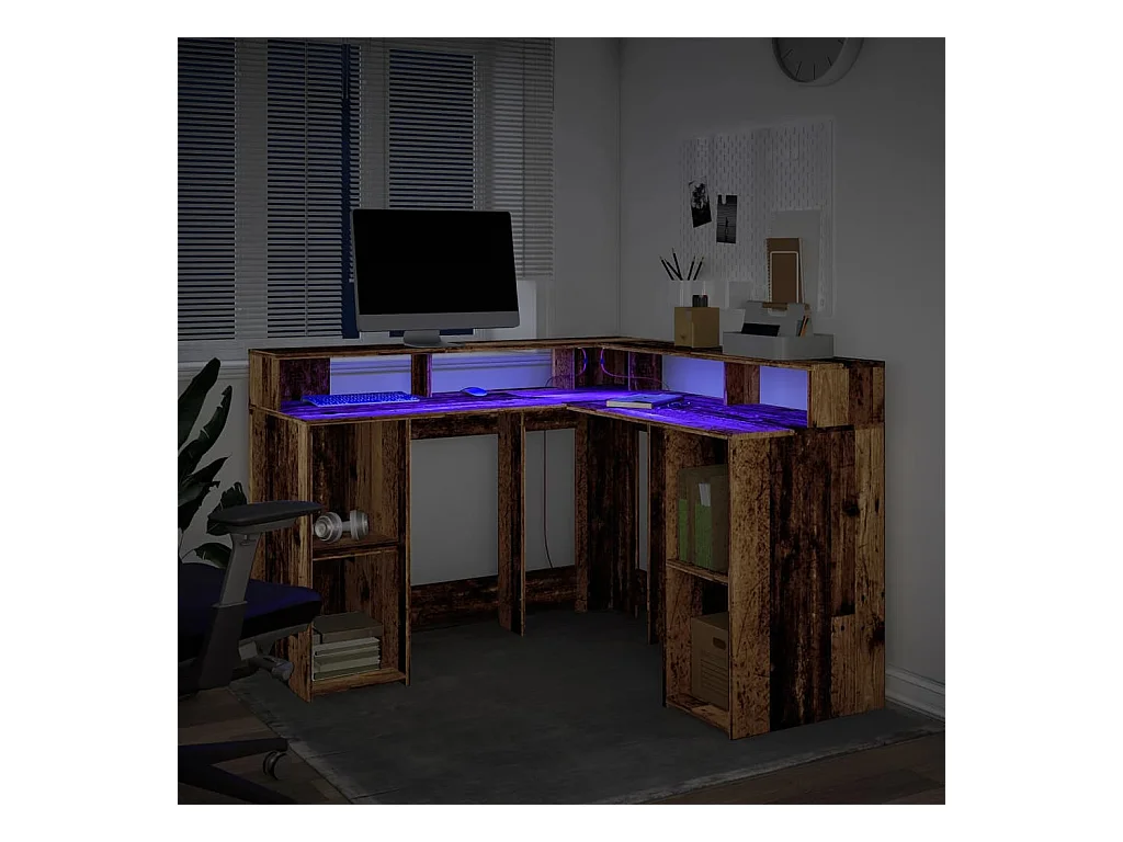 Bureau avec lumières LED vieux bois bois d'ingénierie
