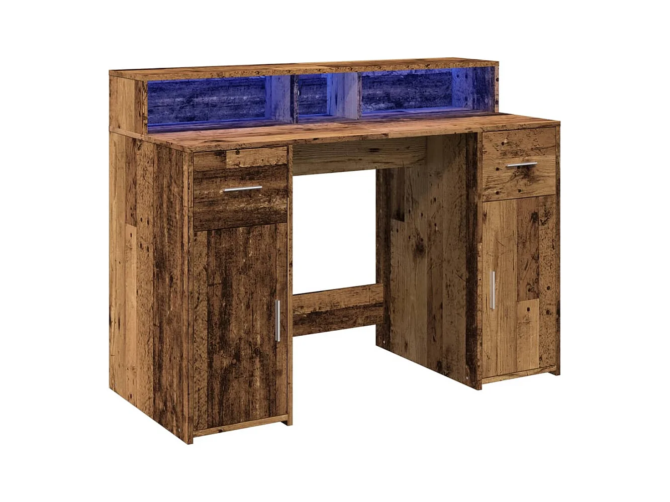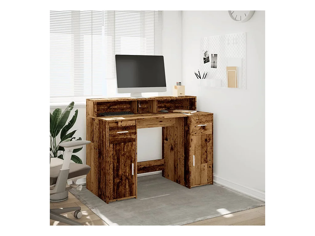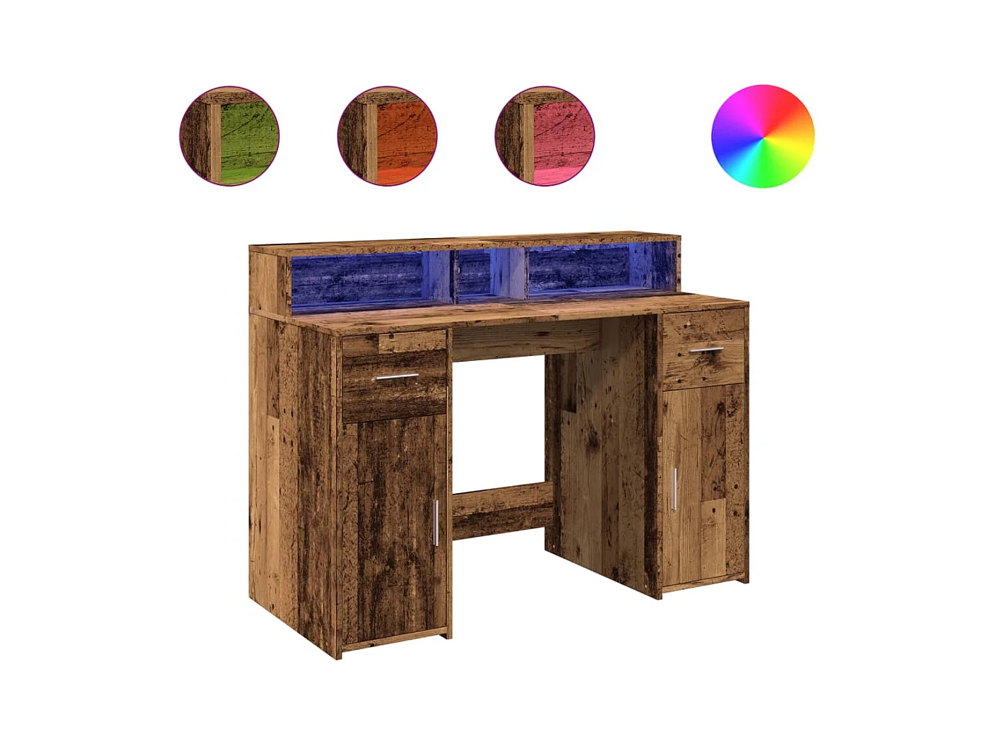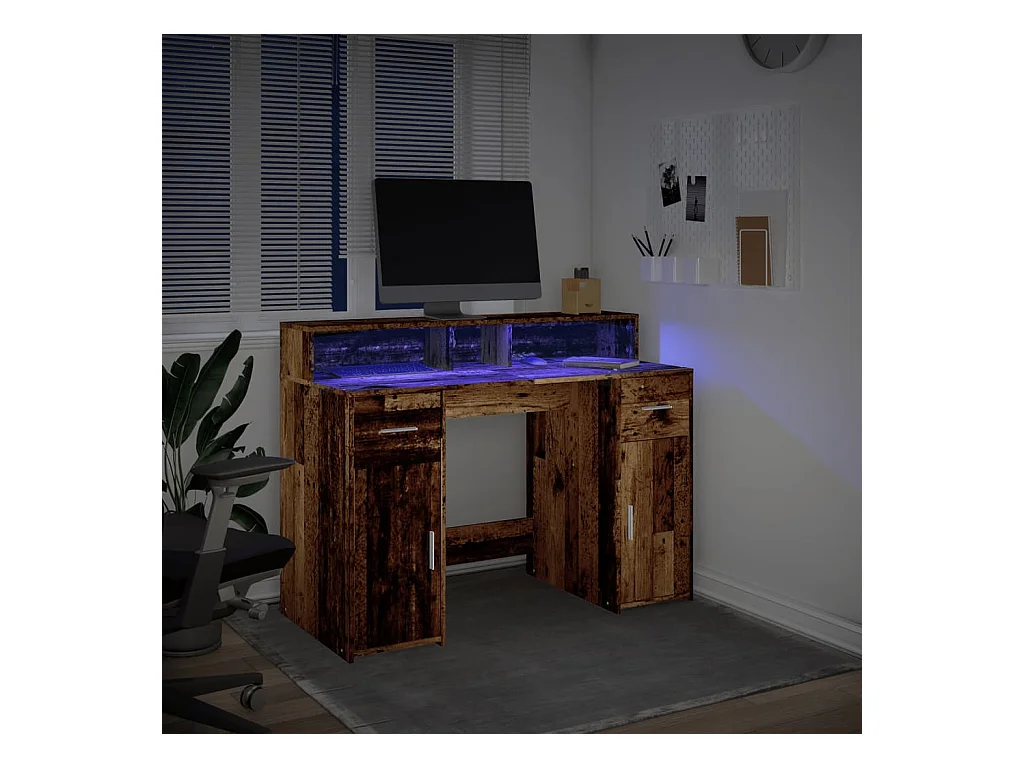 Bureau avec lumières LED vieux bois bois d'ingénierie