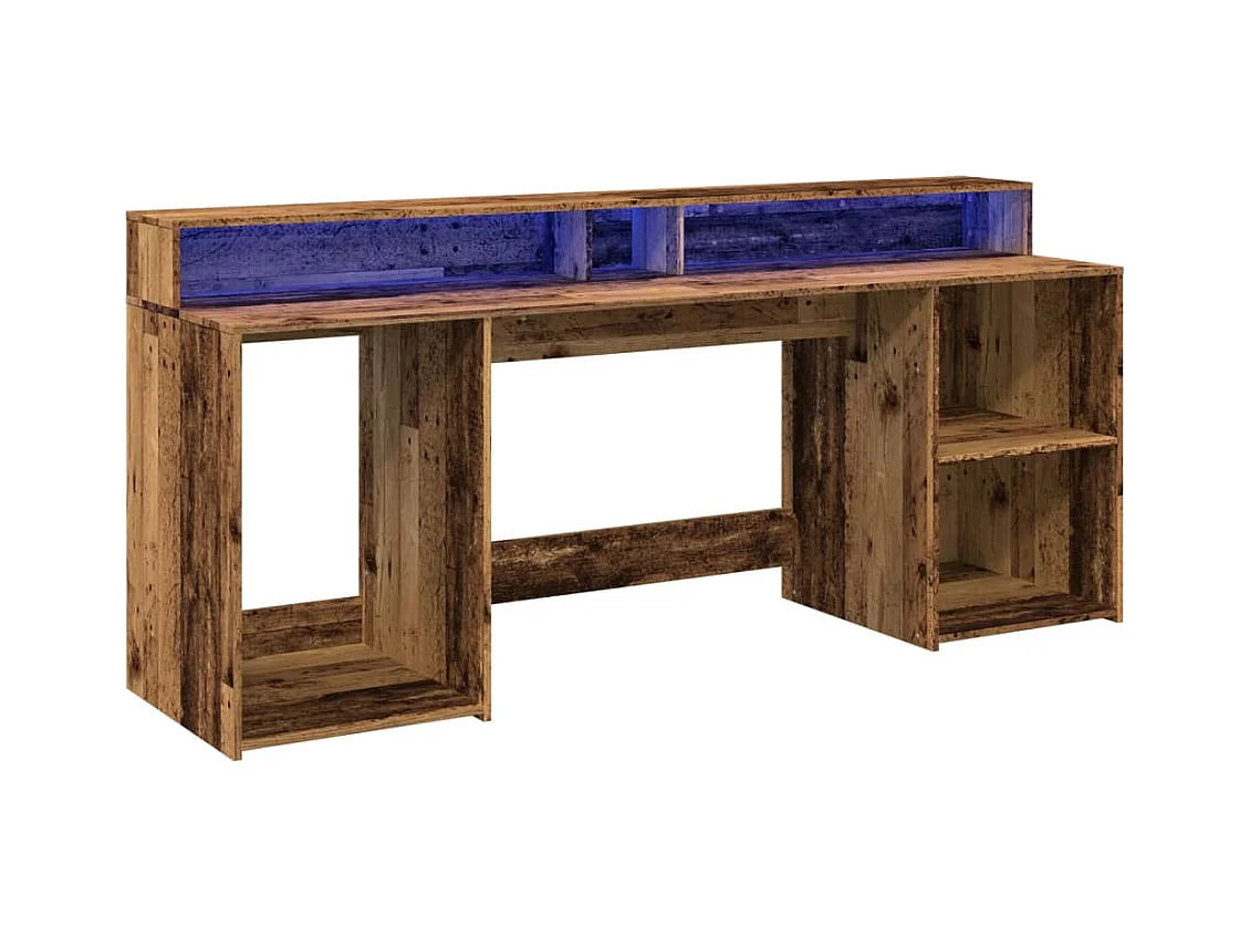 Bureau avec lumières LED vieux bois bois d'ingénierie