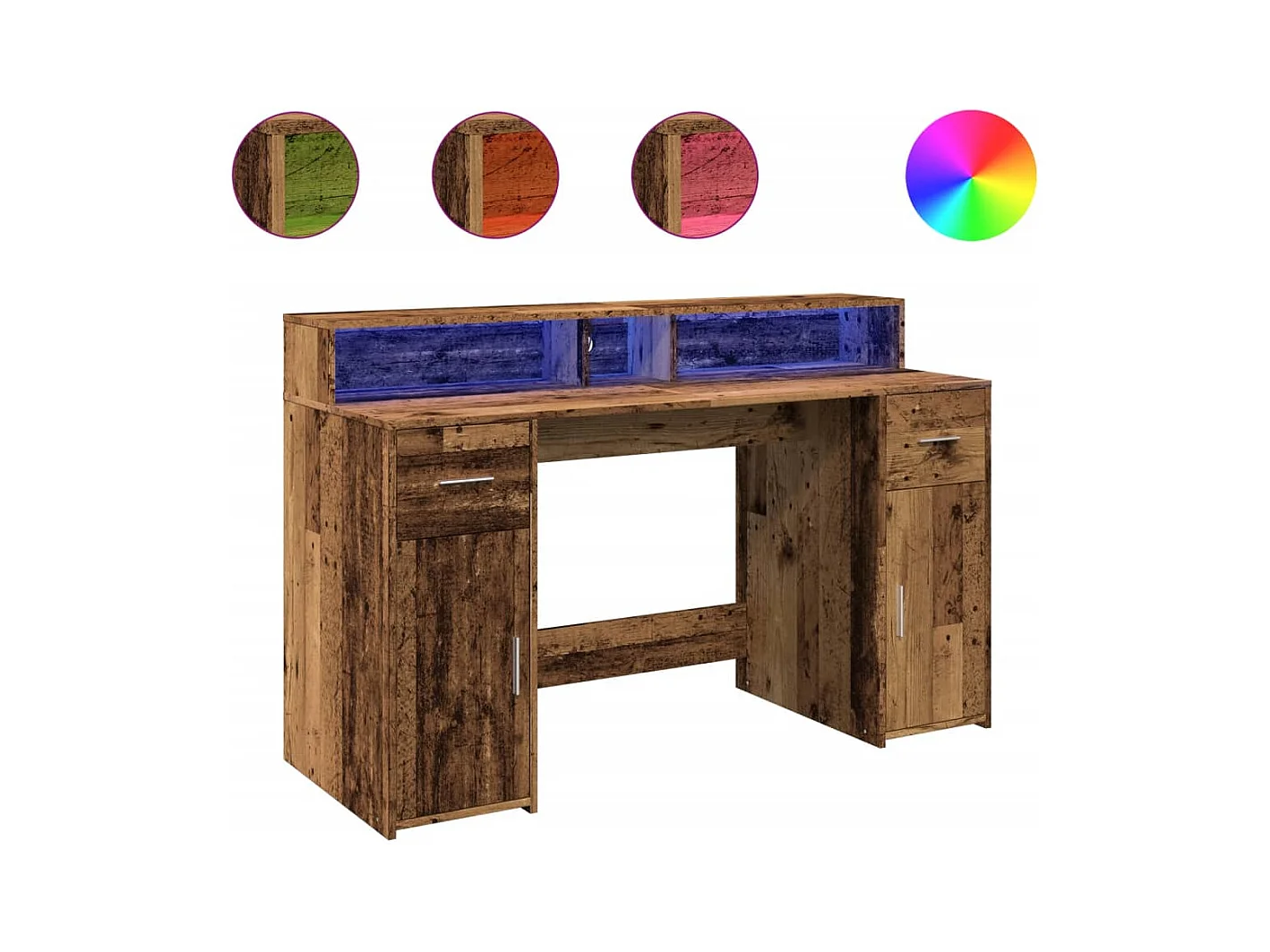 Bureau avec lumières LED vieux bois bois d'ingénierie