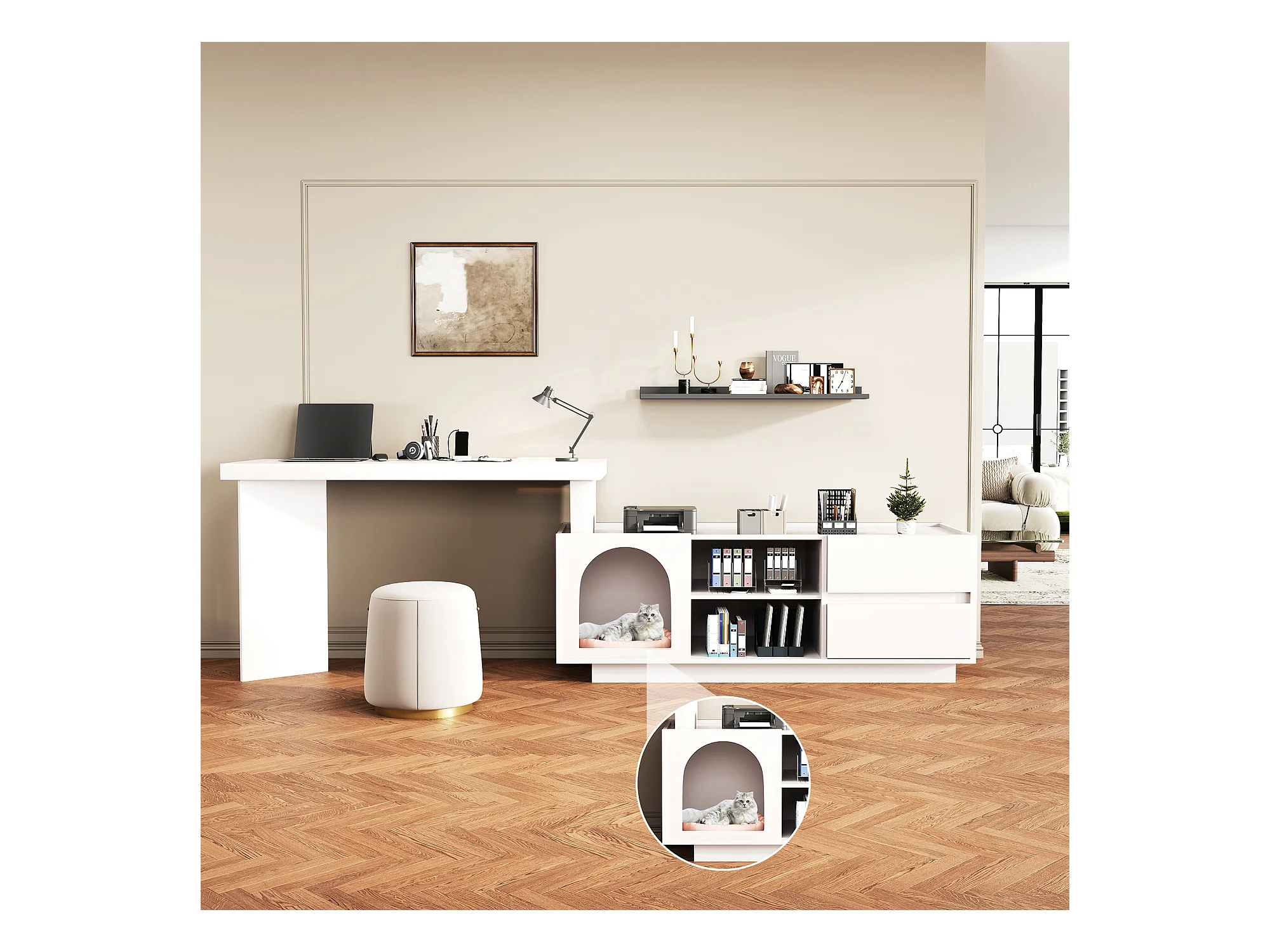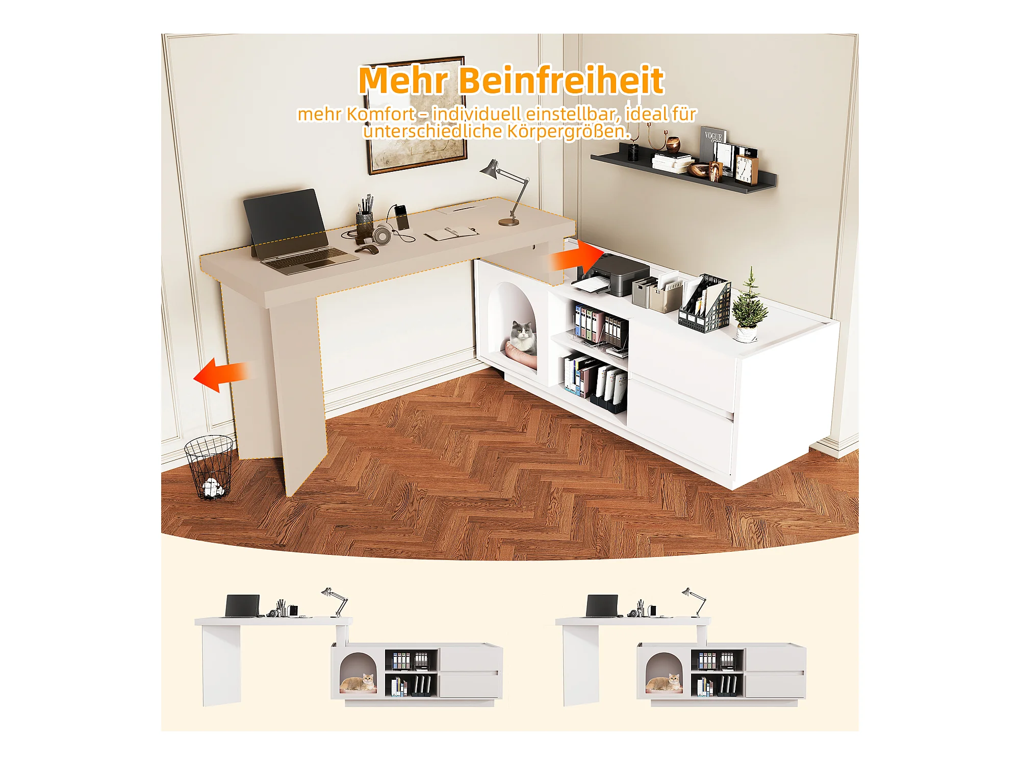 Bureau et buffet 2 en 1 - 120 x 40 x 74.5 cm - rotatif à 360°- avec 3 portes + 1 tiroir - aggloméré - blanc