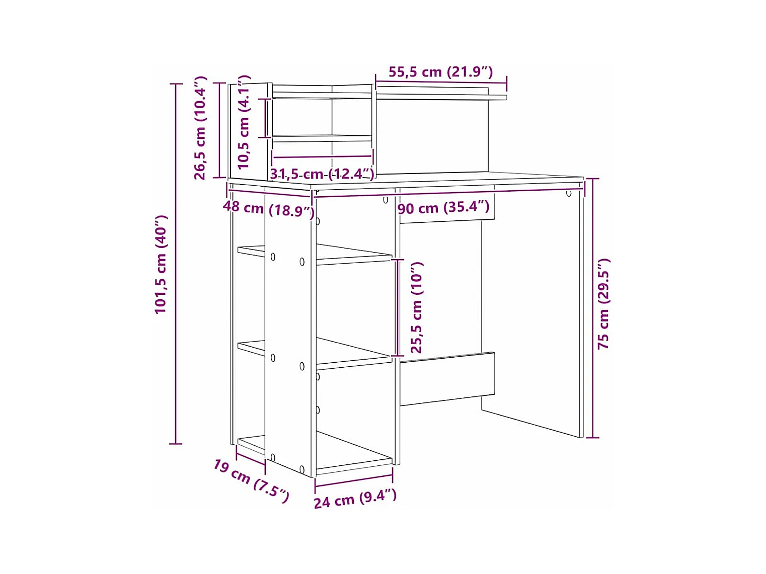 Bureau avec rangement Chêne fumé 90 x 48 x 101,5 cm