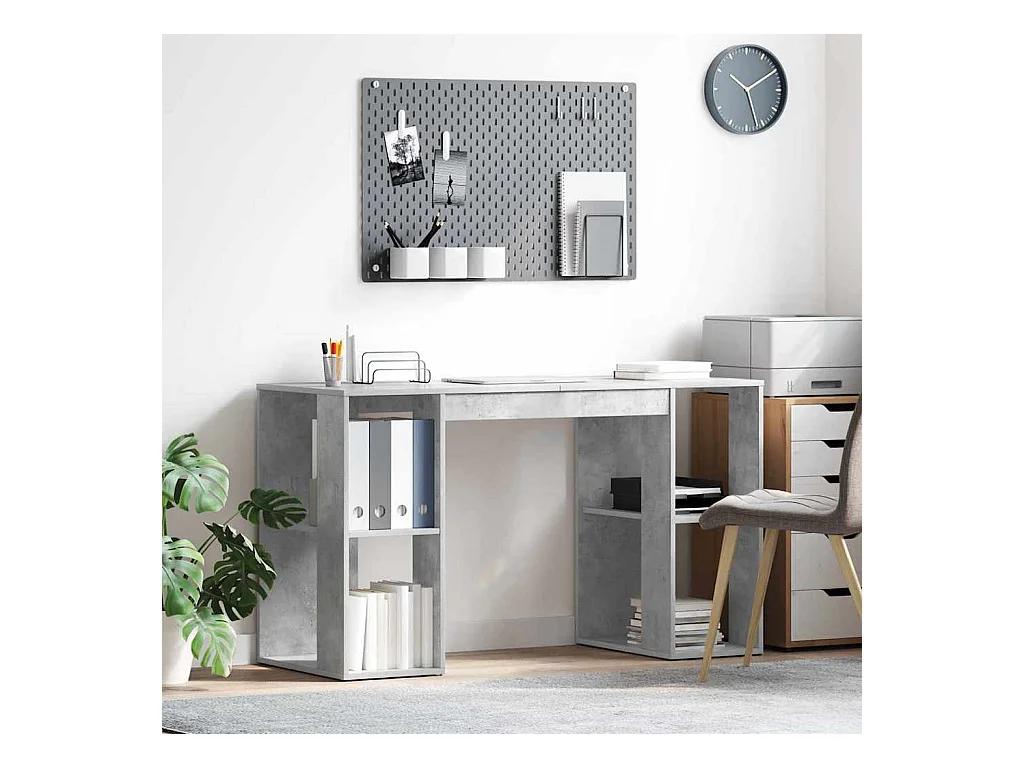 Bureau avec Rangement Gris béton 130 x 50,5 x 75 cm
