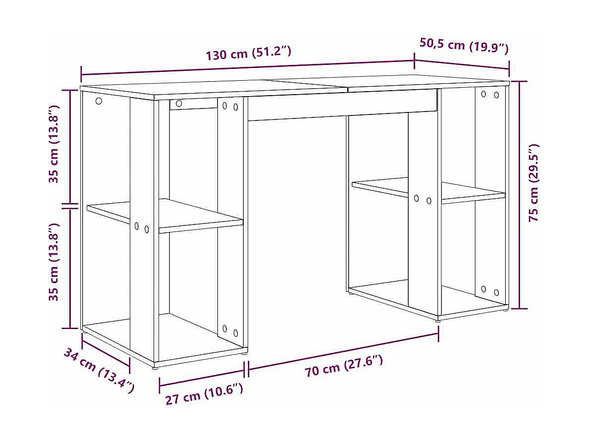 Bureau avec Rangement Gris Sonoma 130 x 50,5 x 75 cm