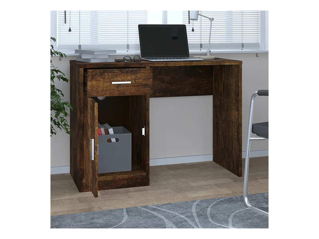 Bureau avec tiroir et armoire Chêne fumé 100x40x73 cm