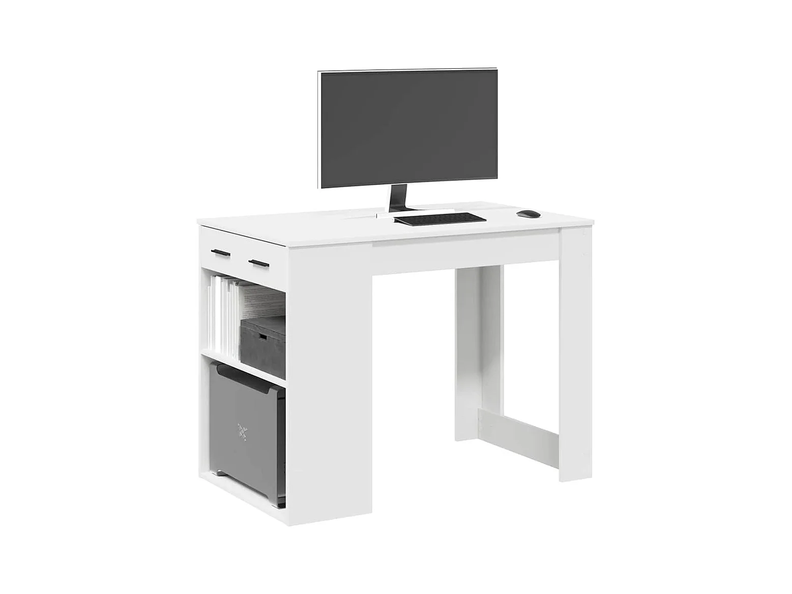 Bureau avec tiroir et étagère blanc bois d'ingénierie