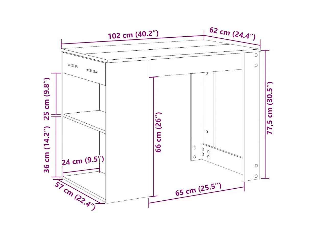 Bureau avec tiroir et étagère chêne sonoma bois d'ingénierie
