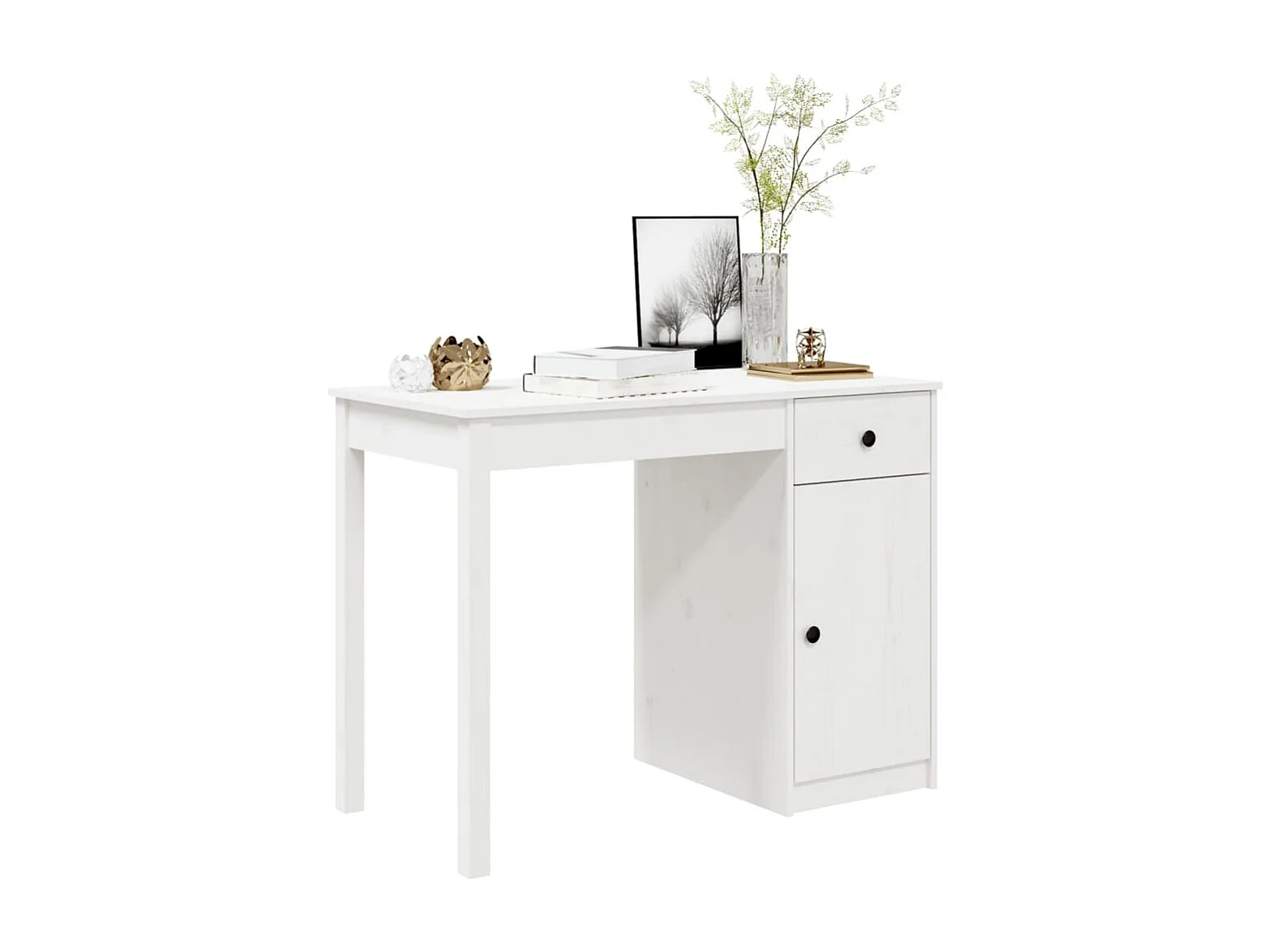 Bureau Blanc 110x50x75 cm Bois massif de pin