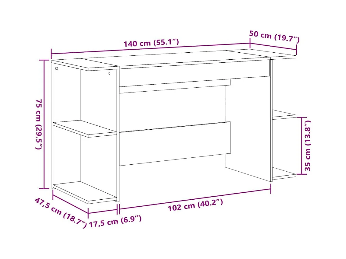 Bureau blanc 140x50x75 cm bois d'ingénierie