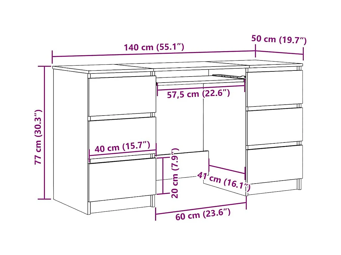 Bureau à double piédestal Blanc 140 x 48 x 80 cm