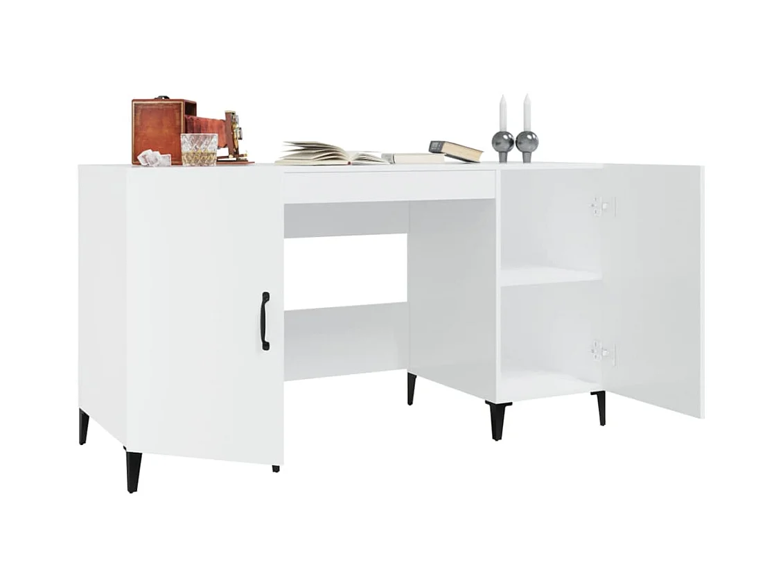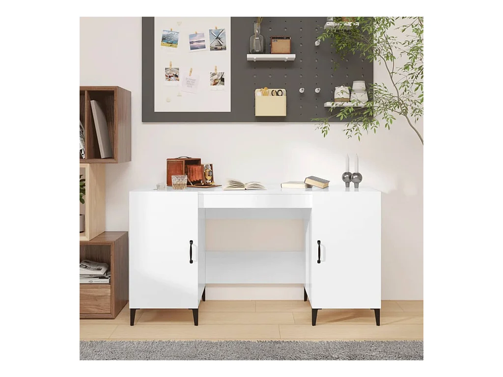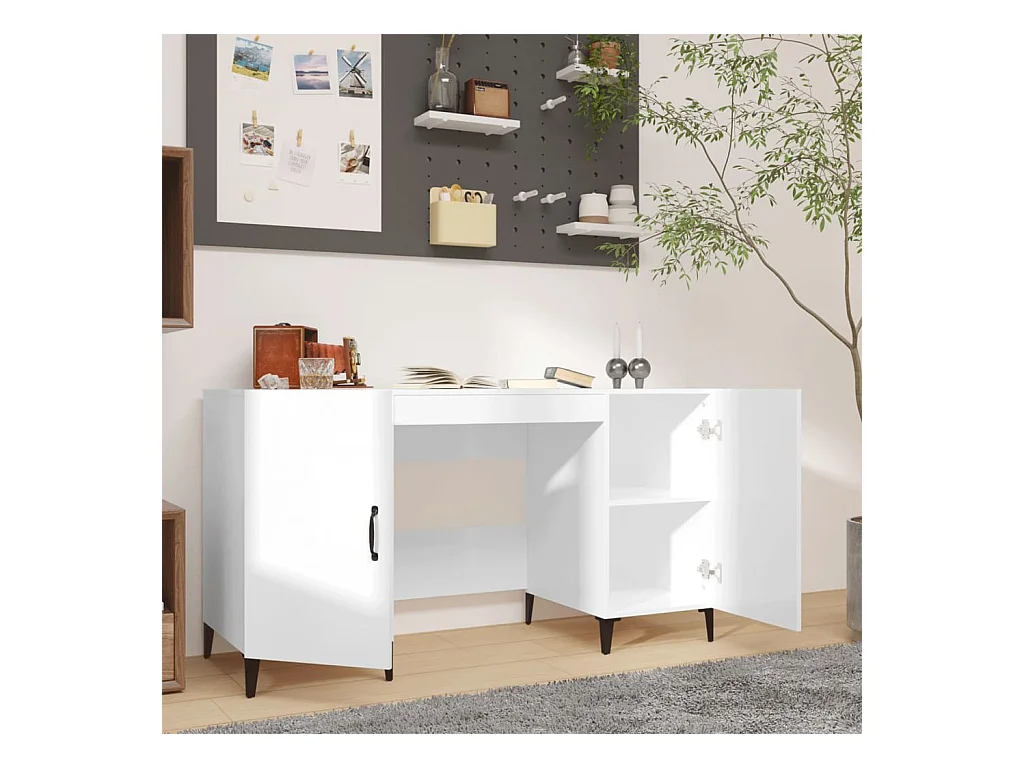 Bureau Blanc brillant 140x50x75 cm Bois d'ingénierie FR97826