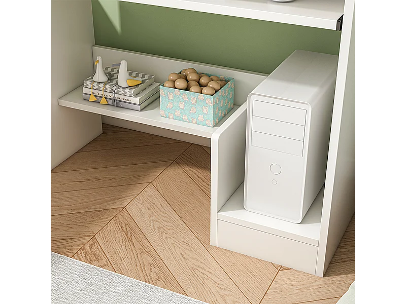 Bureau informatique pour adolescents table blanche avec étagère étagères tiroirs