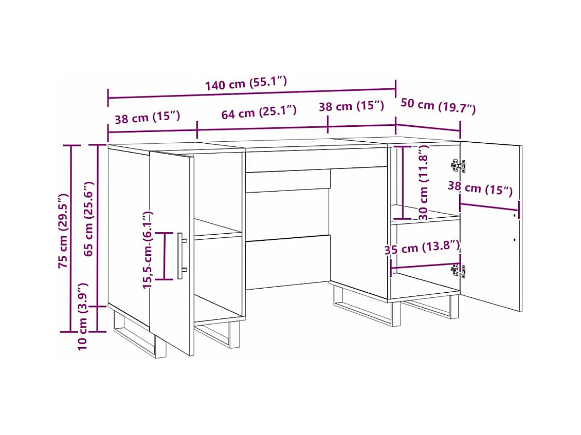 Bureau d'ordinateur chêne artisanal 80x50x75 cm bois ingénierie