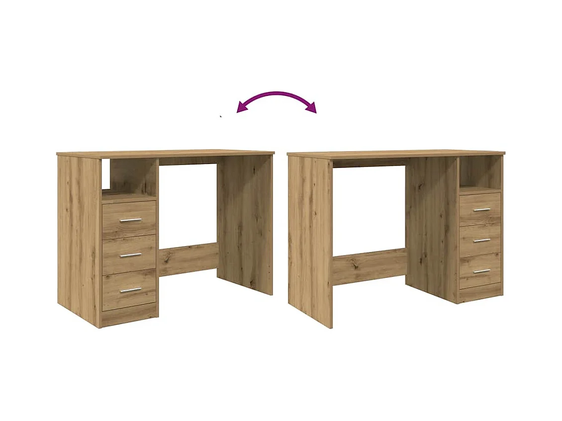 Bureau chêne artisanal 102x76x50 cm bois d'ingénierie