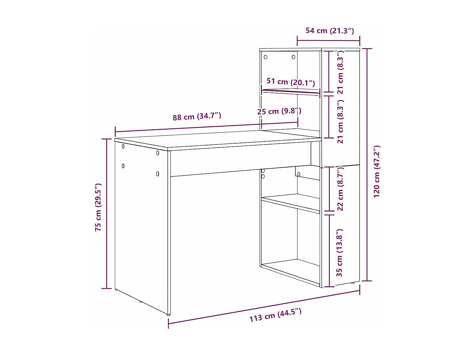 Bureau Chêne fumé 113 x 54 x 120 cm Bois d'ingénierie