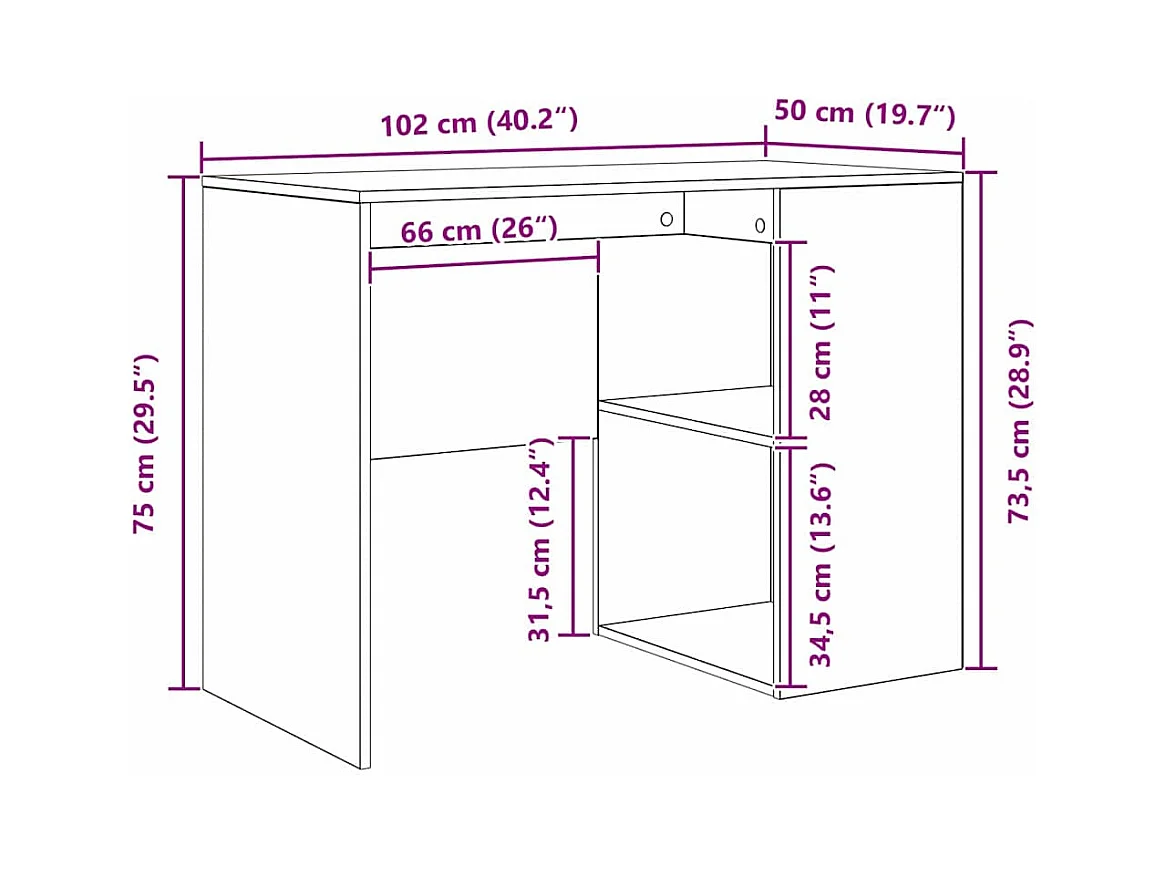Bureau Chêne fumé 102 x 50 x 75 cm Bois d'ingénierie