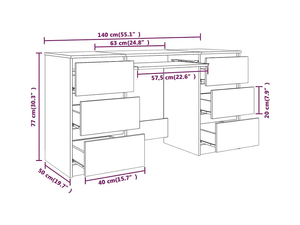Bureau Chêne sonoma 140x50x77 cm Bois d'ingénierie