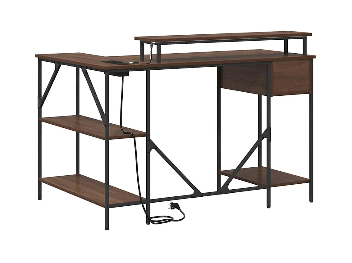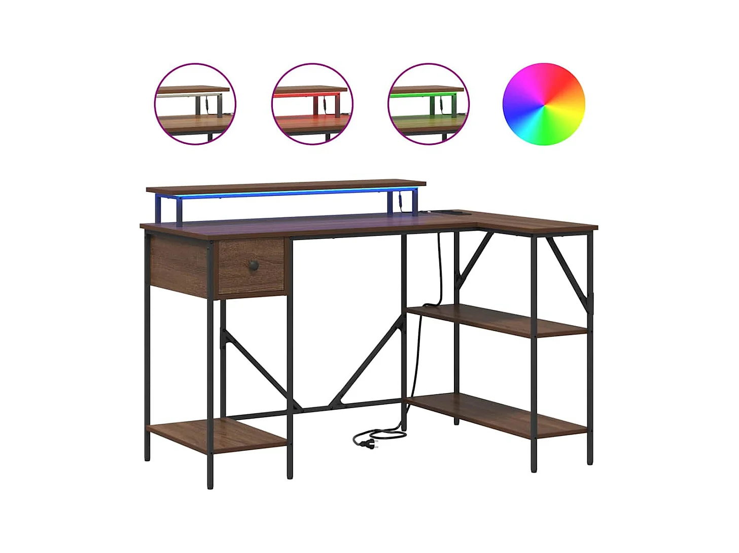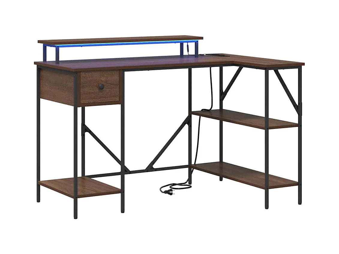Bureau et lumières LED chêne marron bois d'ingénierie