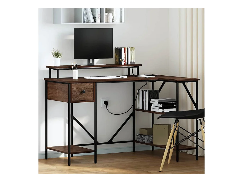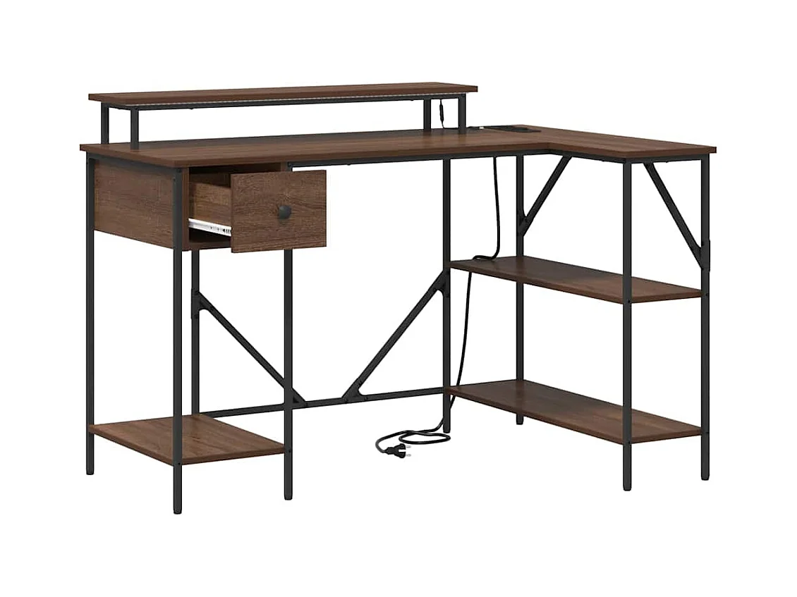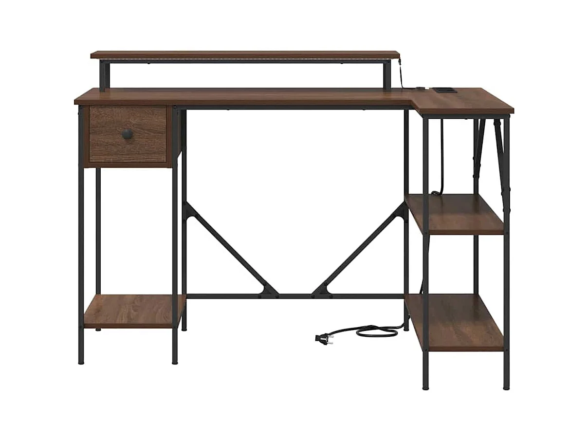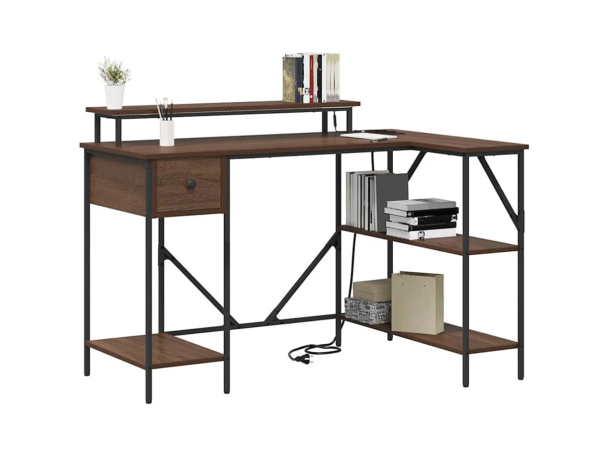 Bureau et lumières LED chêne marron bois d'ingénierie