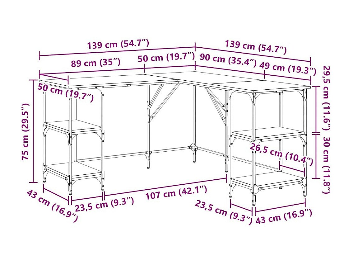 Bureau chêne marron 139x139x75 cm bois d'ingénierie
