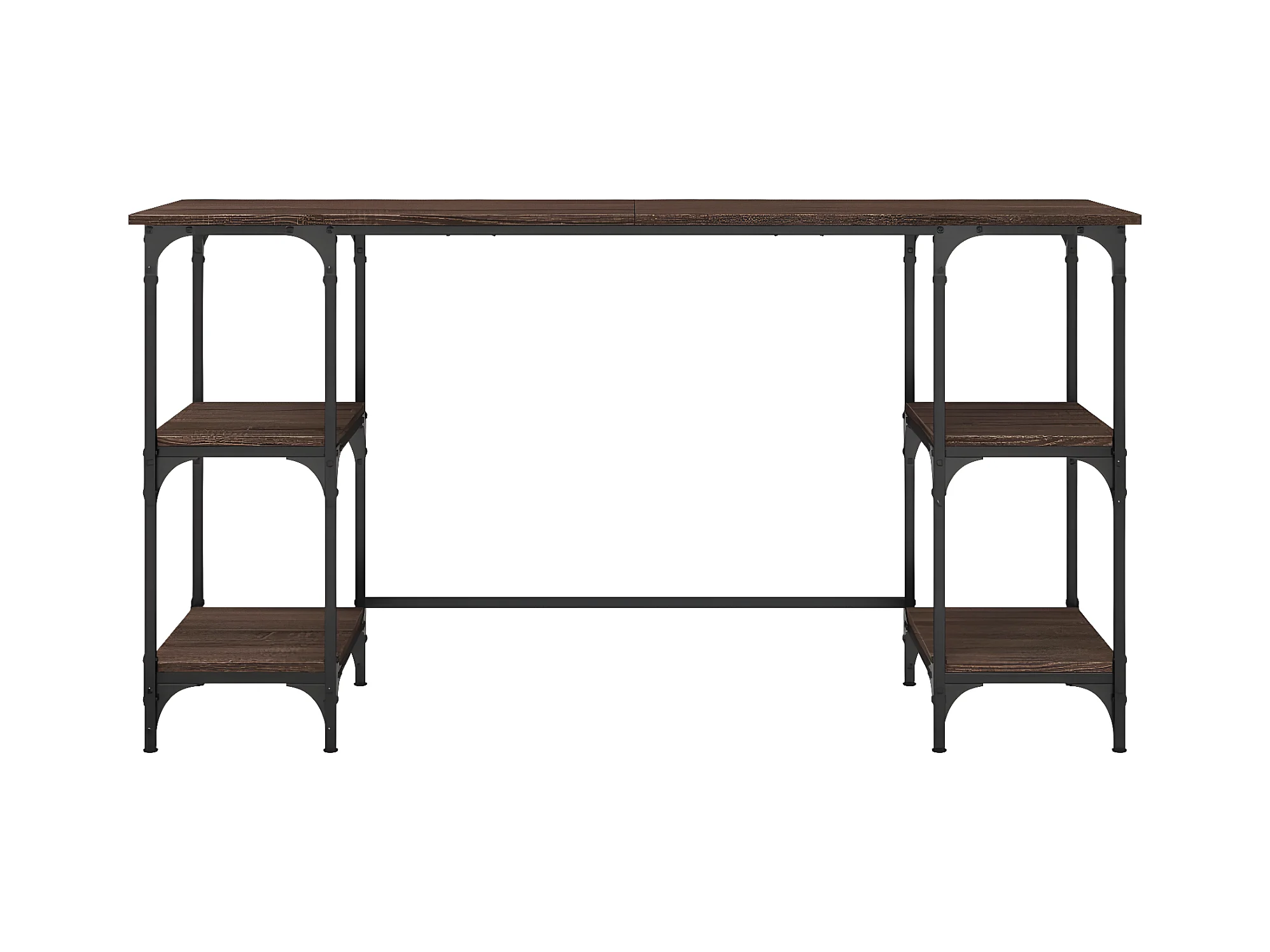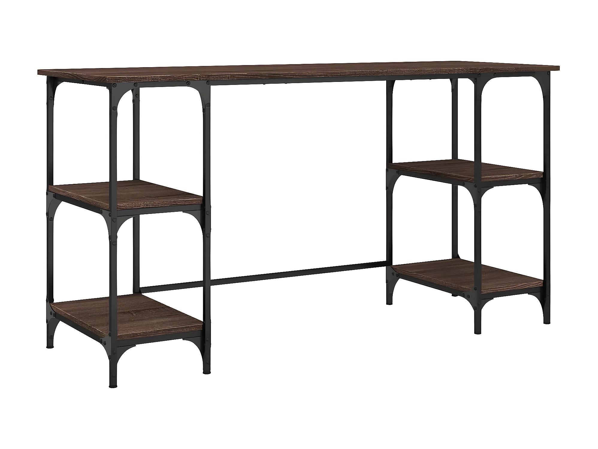Bureau chêne marron 140x50x75 cm métal et bois d'ingénierie