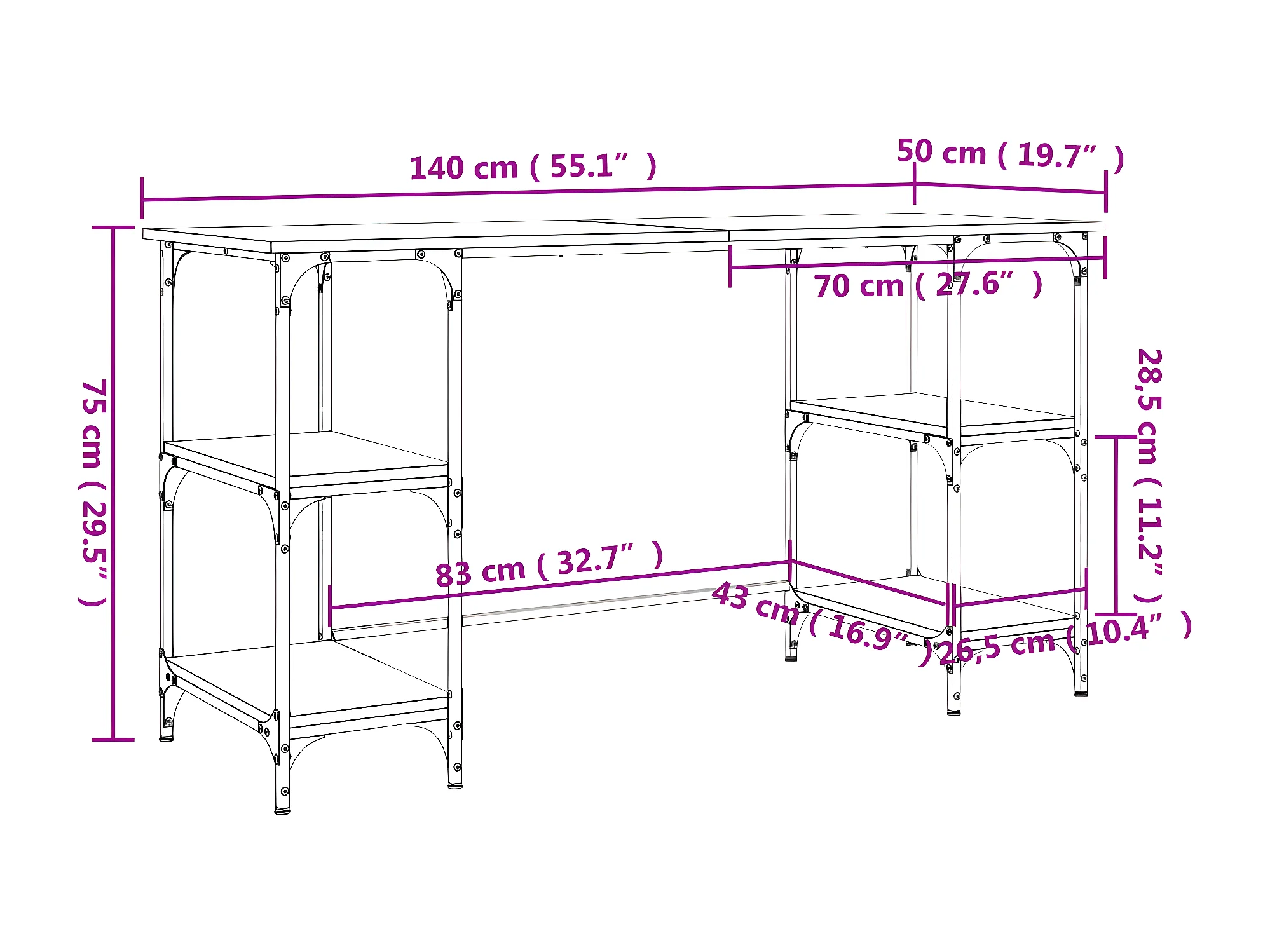 Bureau Chêne fumé 140x50x77 cm Bois d'ingénierie