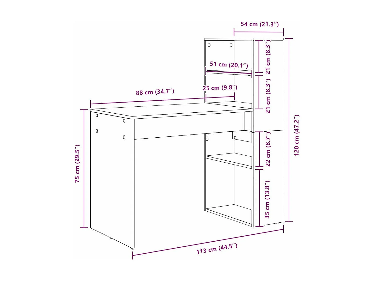Bureau Chêne noir 113 x 54 x 120 cm Bois d'ingénierie