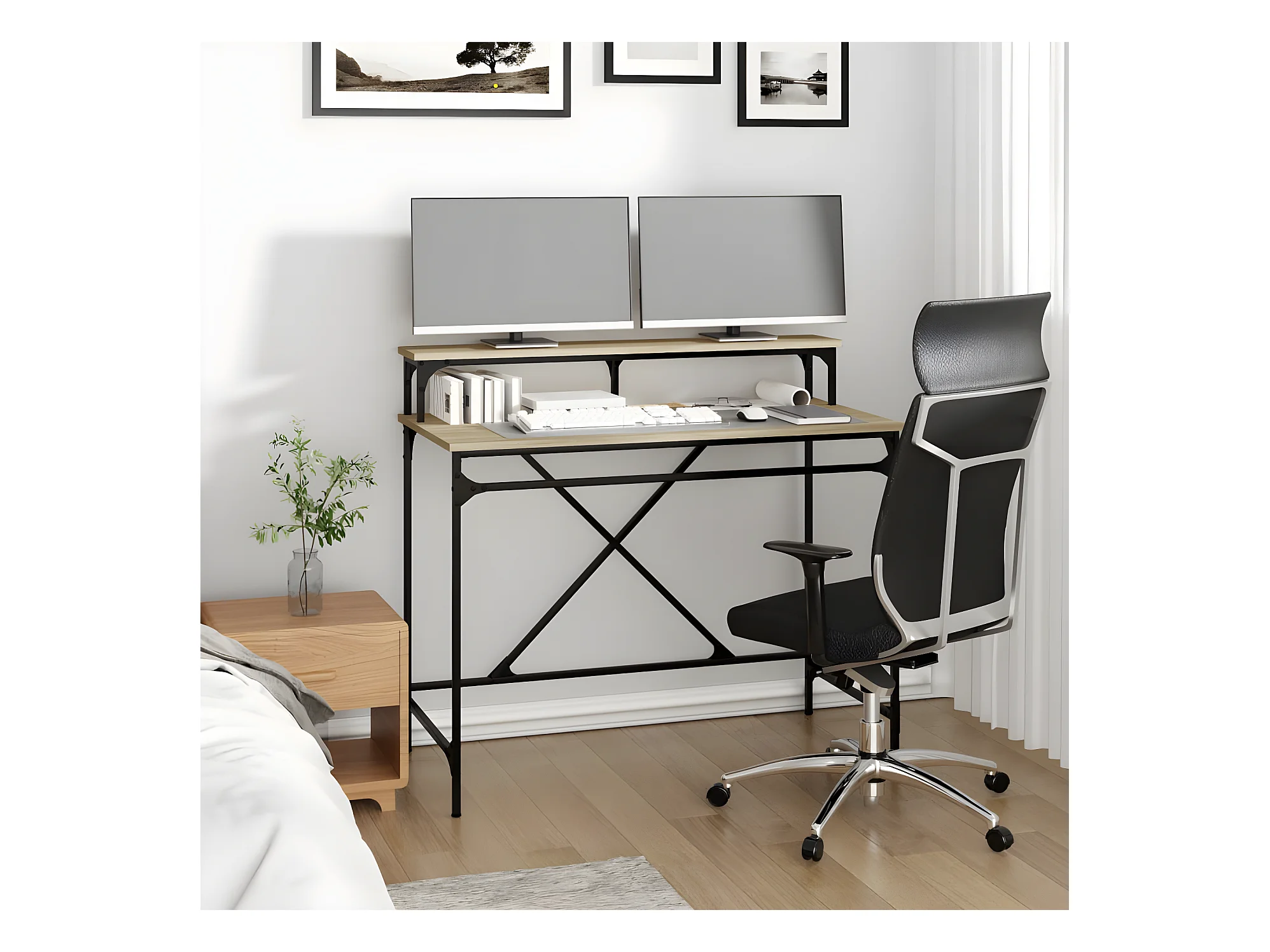 Bureau chêne fumé 100x50x90 cm bois d'ingénierie et fer