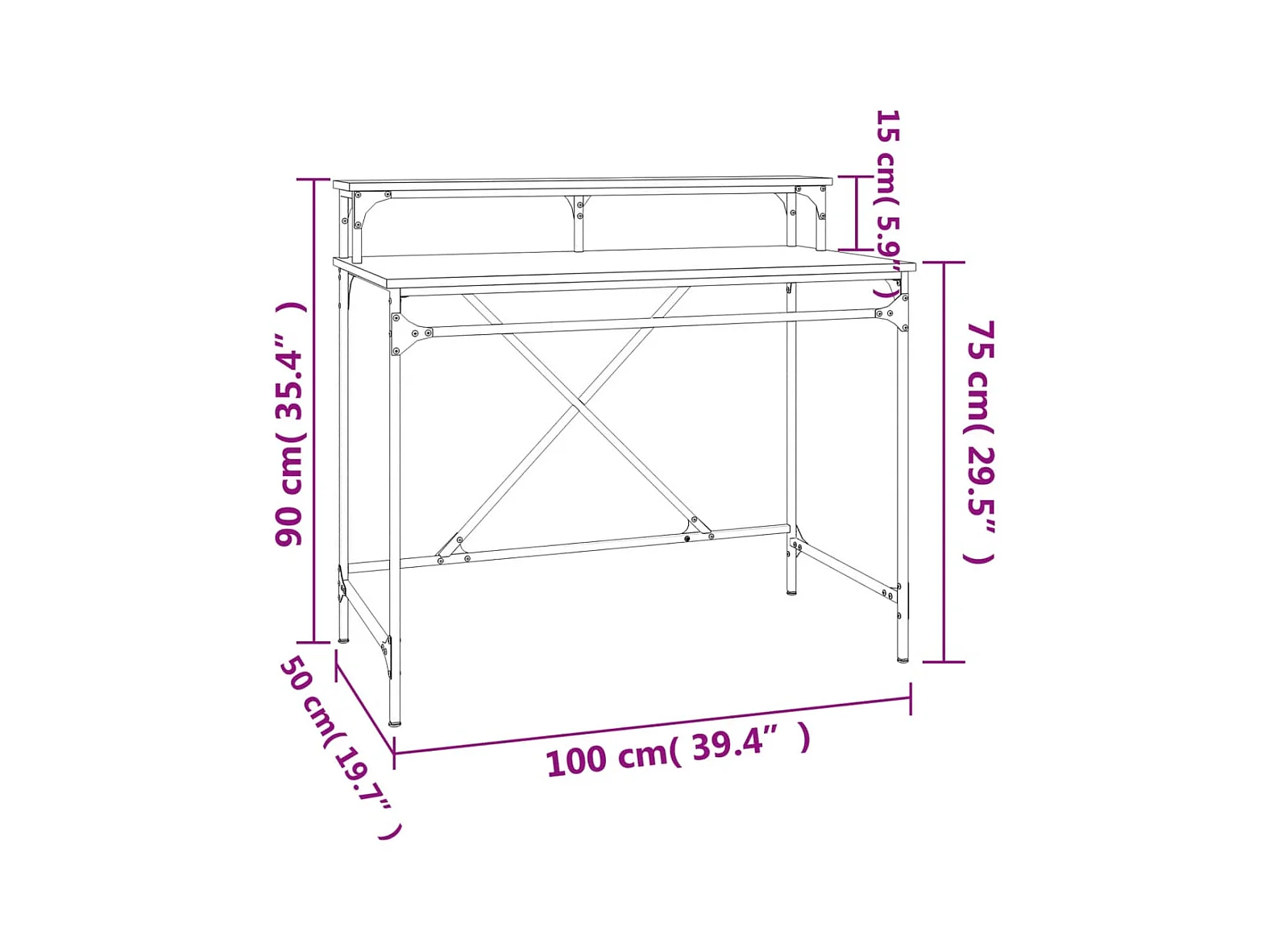 Bureau chêne sonoma 100x50x90 cm bois d'ingénierie et fer