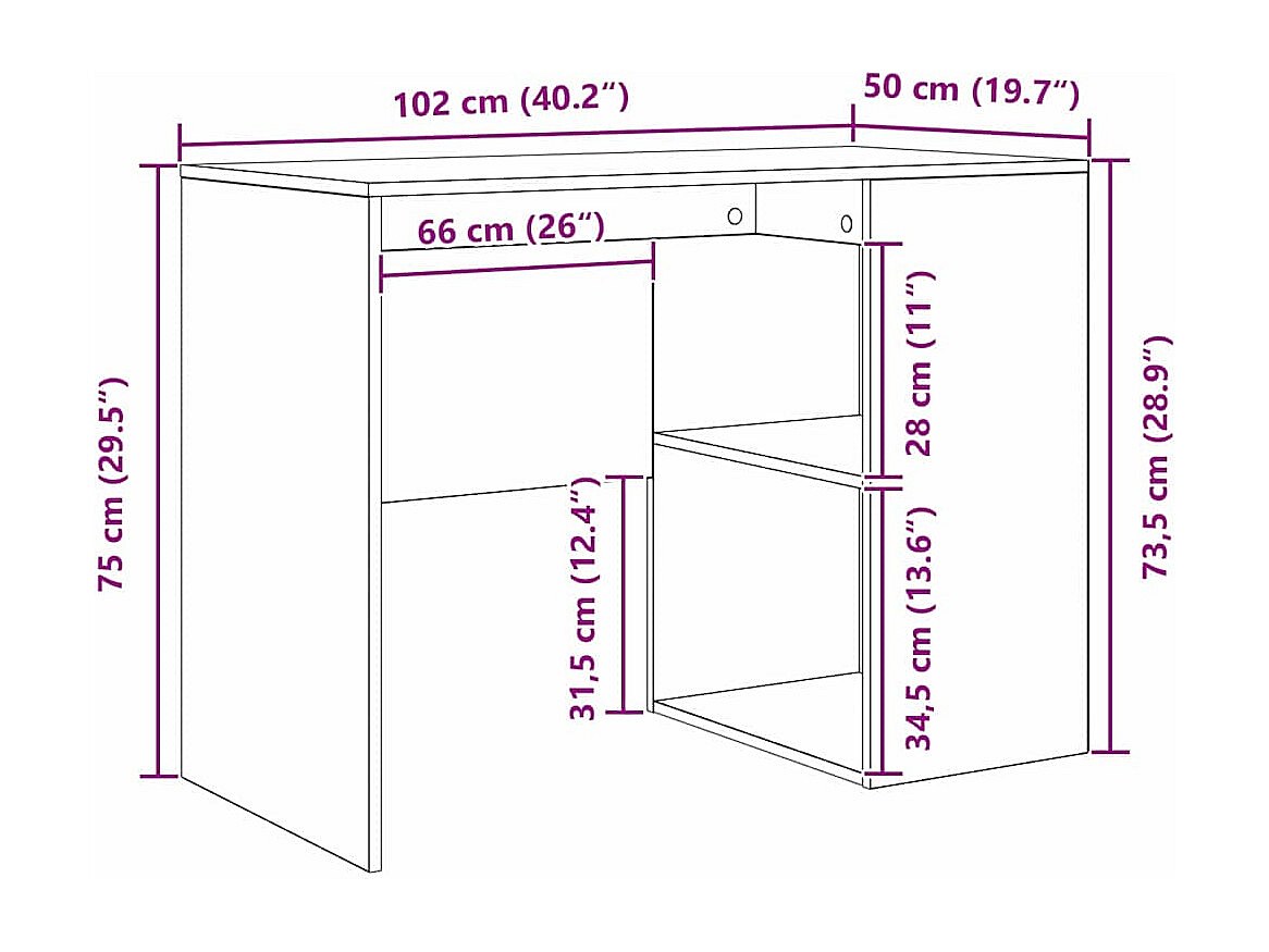 Bureau Chêne sonoma 102 x 50 x 75 cm Bois d'ingénierie