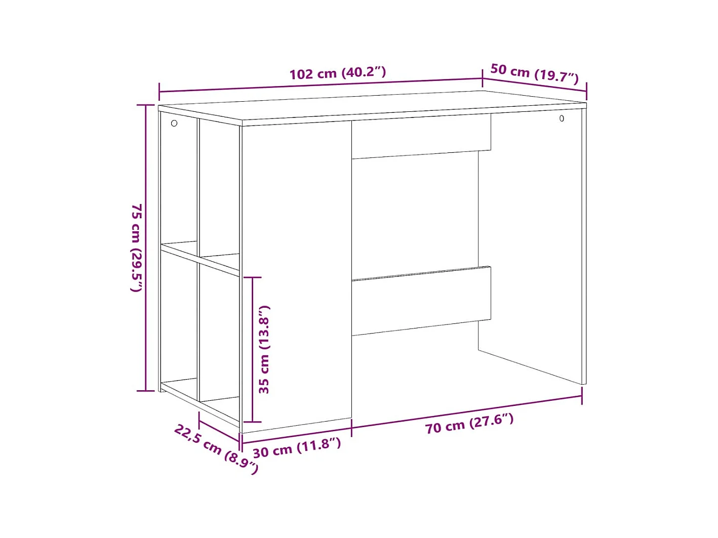 Bureau chêne sonoma 102x50x75 cm bois d'ingénierie