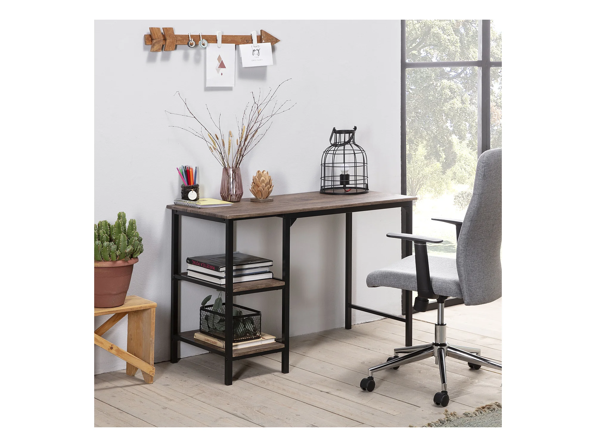 Bureau Lidia noir, 3 étagères, style industriel, 120 cm longueur