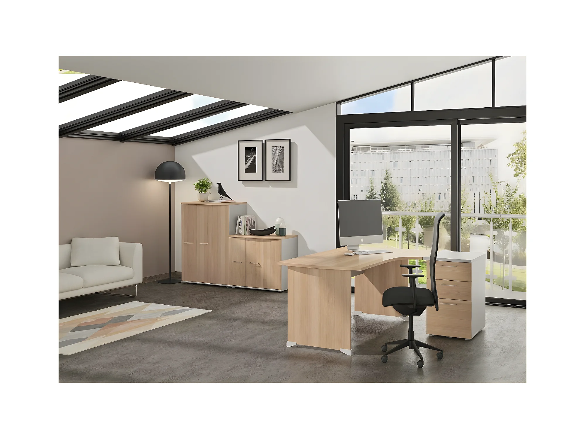 Bureau d'angle avec armoire de rangements - meuble de rangement 6 compartiments - forme variable - naturel