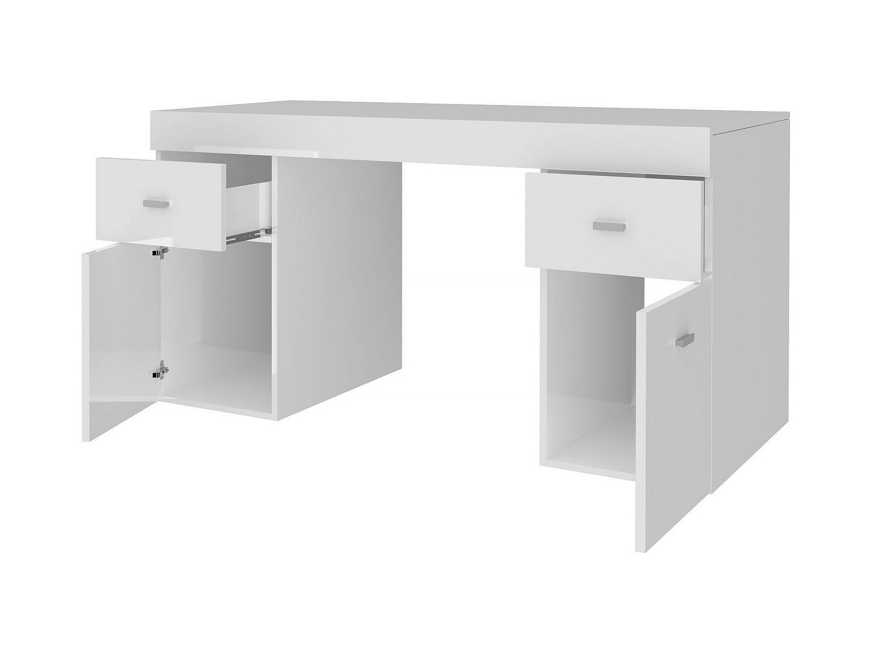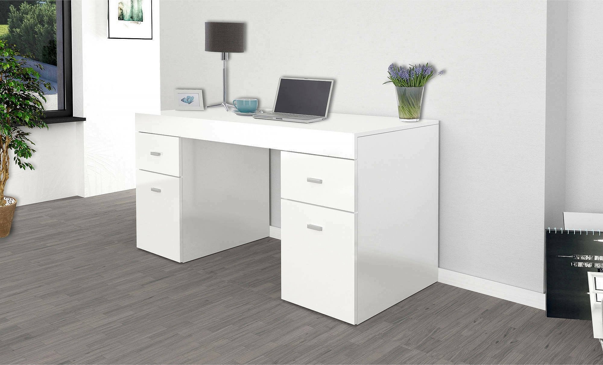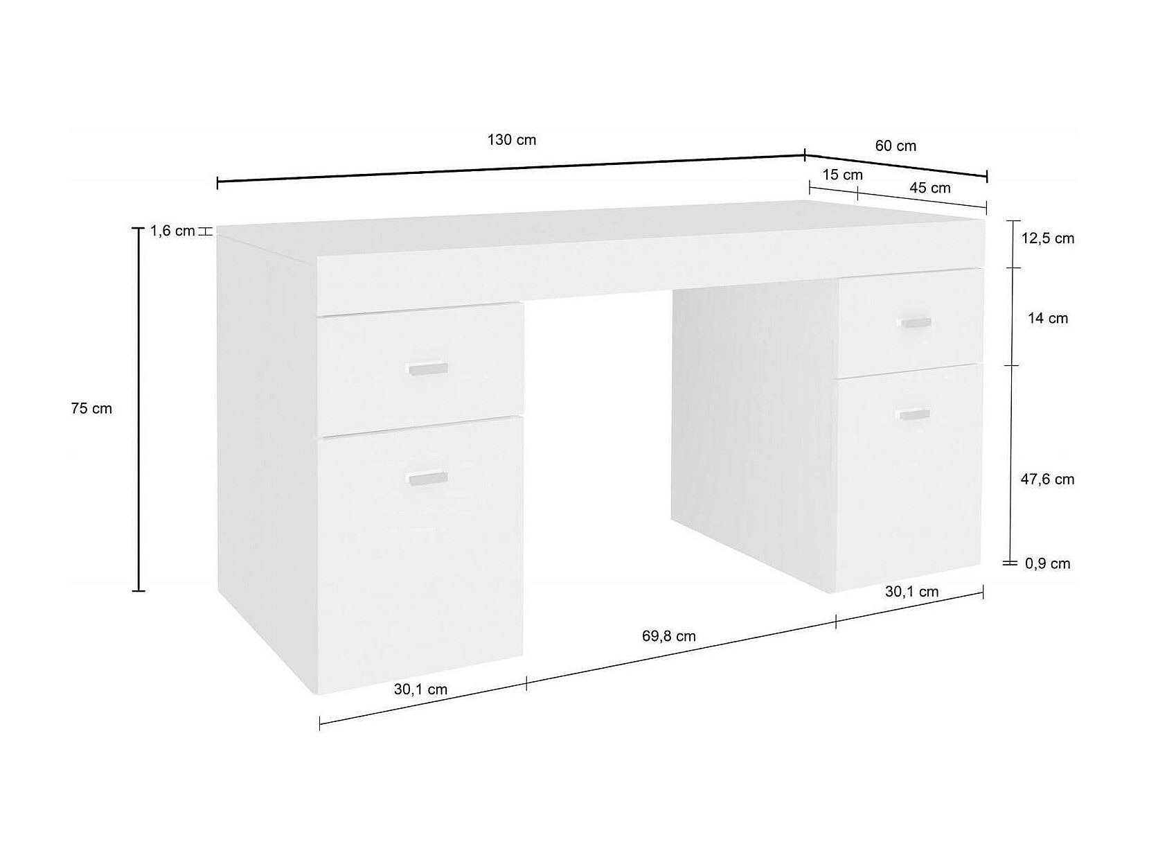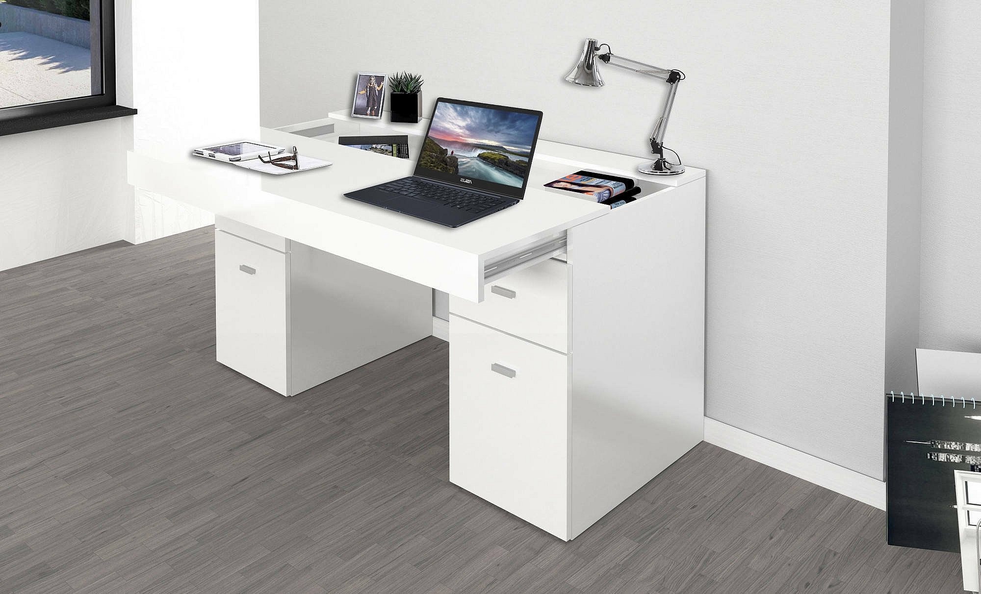 Bureau Cristiano, Bureau PC linéaire, Table de bureau polyvalente, Bureau peu encombrant, 100% Made in Italy, 130x60h75 cm, Blanc brillant