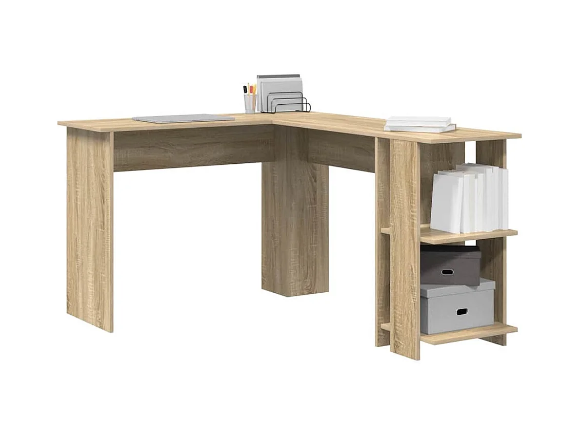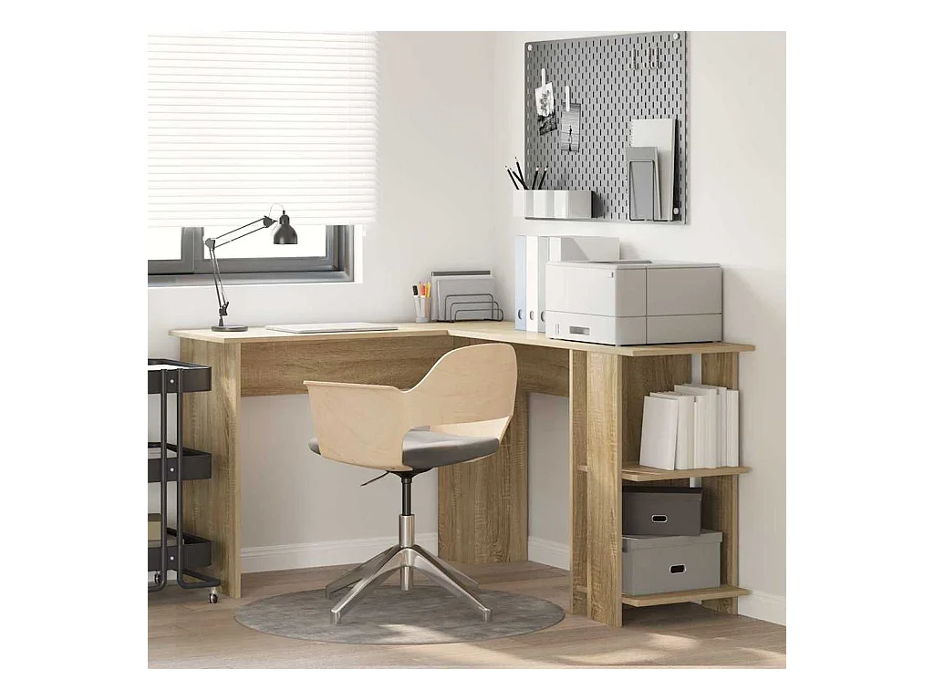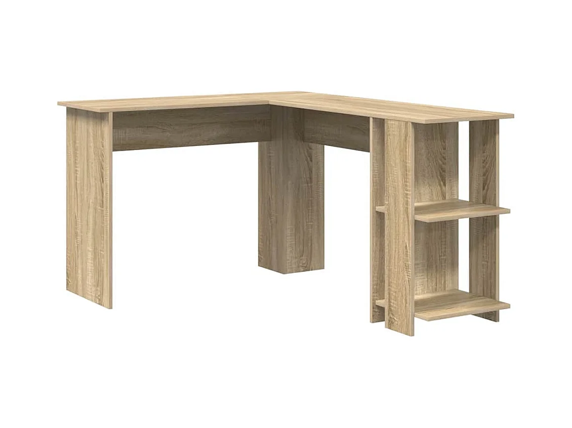 Bureau d'angle avec rangement avec étagère chêne artisanal