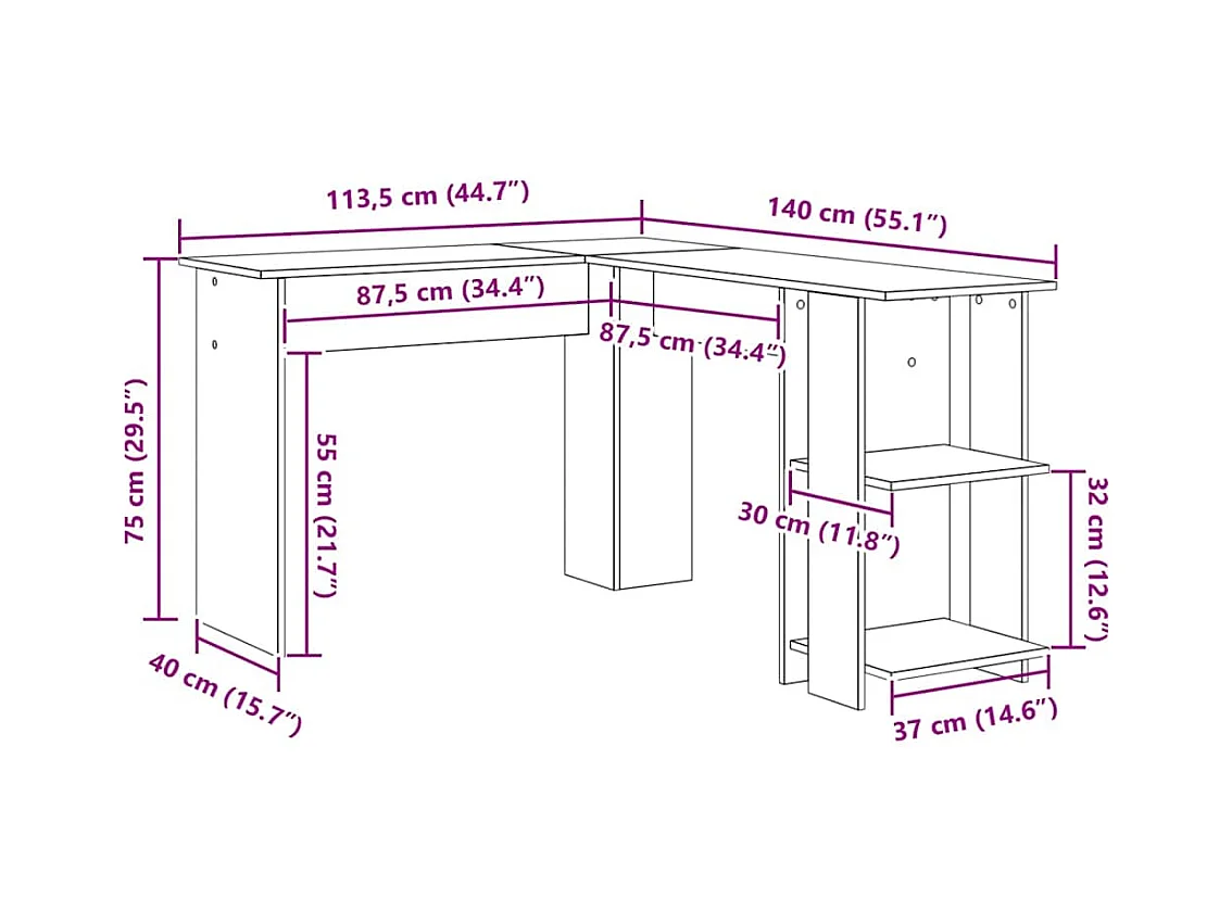 Bureau d'angle avec rangement Chêne sonoma 140 x 113.5 x 75 cm
