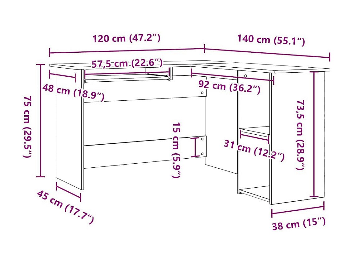 Bureau d'angle Chêne noir 120 x 140 x 75 cm Bois d'ingénierie