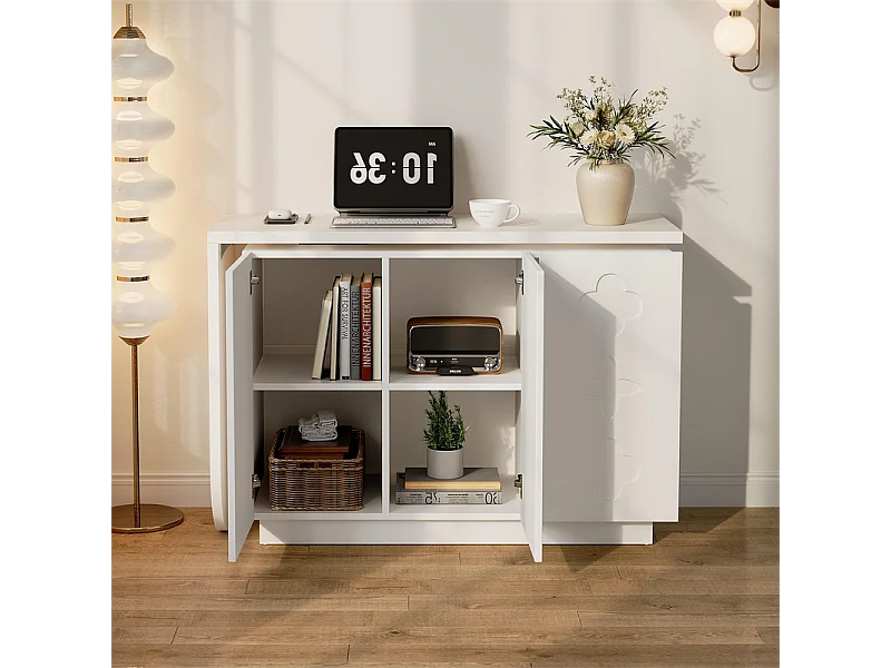Bureau d’angle extensible - avec 3 portes en MDF - fonction pivotante - Blanc - 110x40x75cm