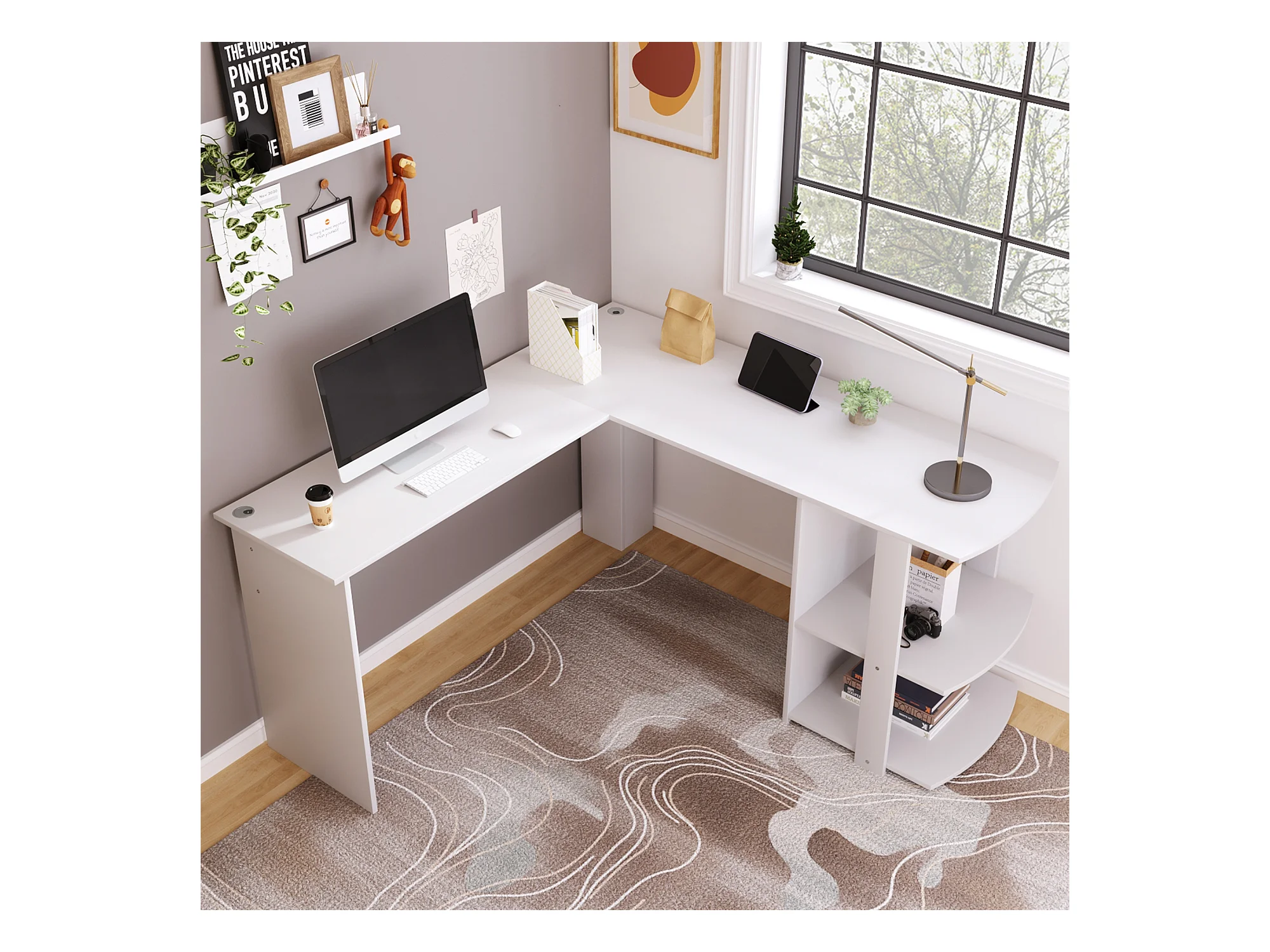 Bureau d'angle L avec 2 étagères, en panneau de particules, blanc (75x140x140 cm)