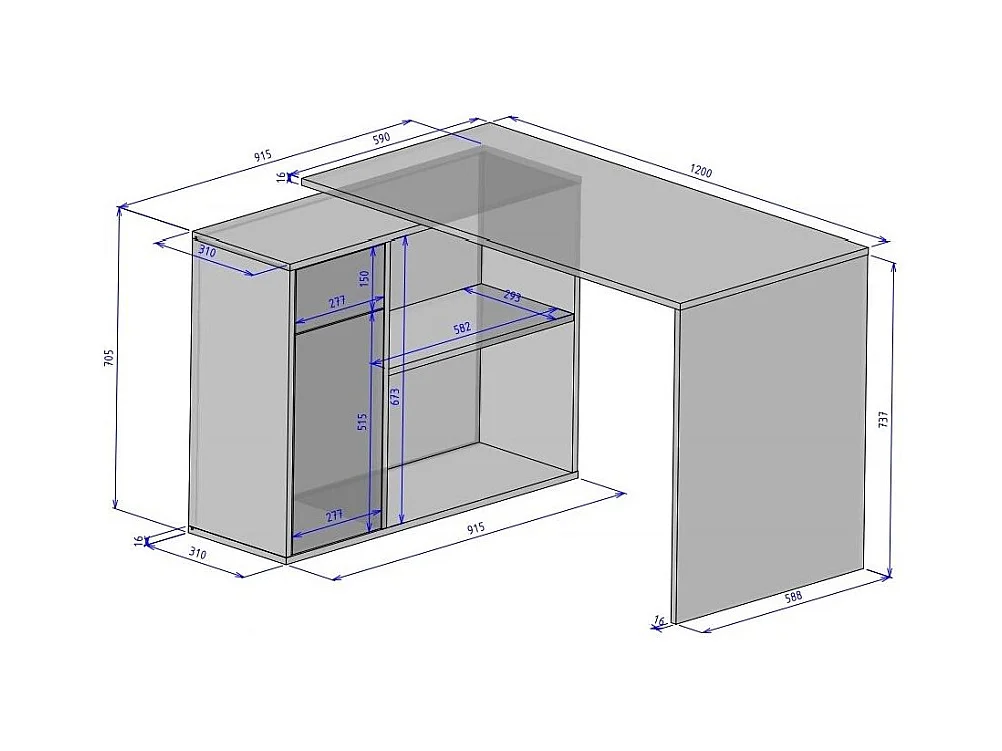 Bureau d'angle modulable blanc avec rangement Paulo 120cm